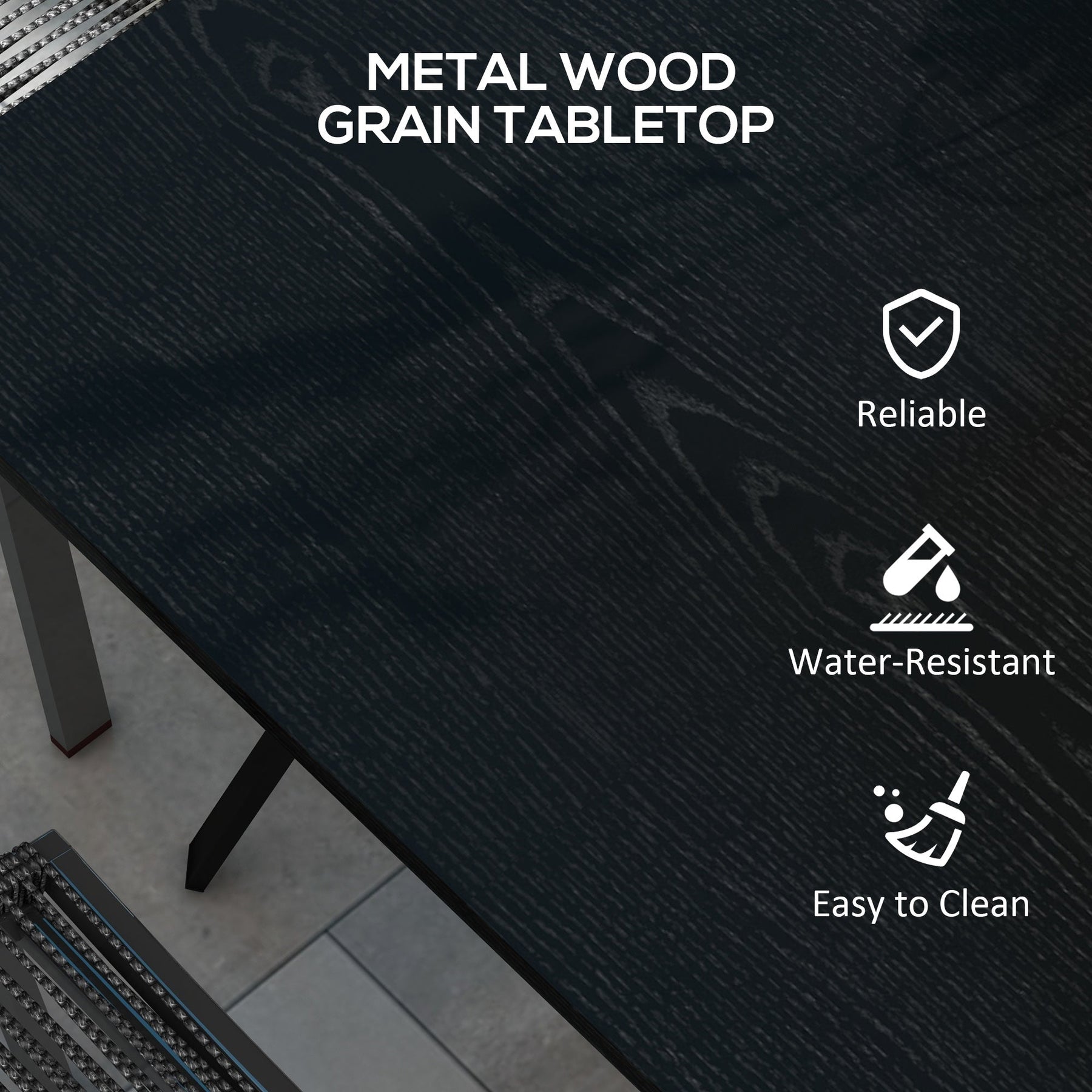 Outsunny Rectangle Patio Dining Table for 6 People with Steel Legs, Metal Tabletop for Garden, Backyard, Lawn, Balcony, Black