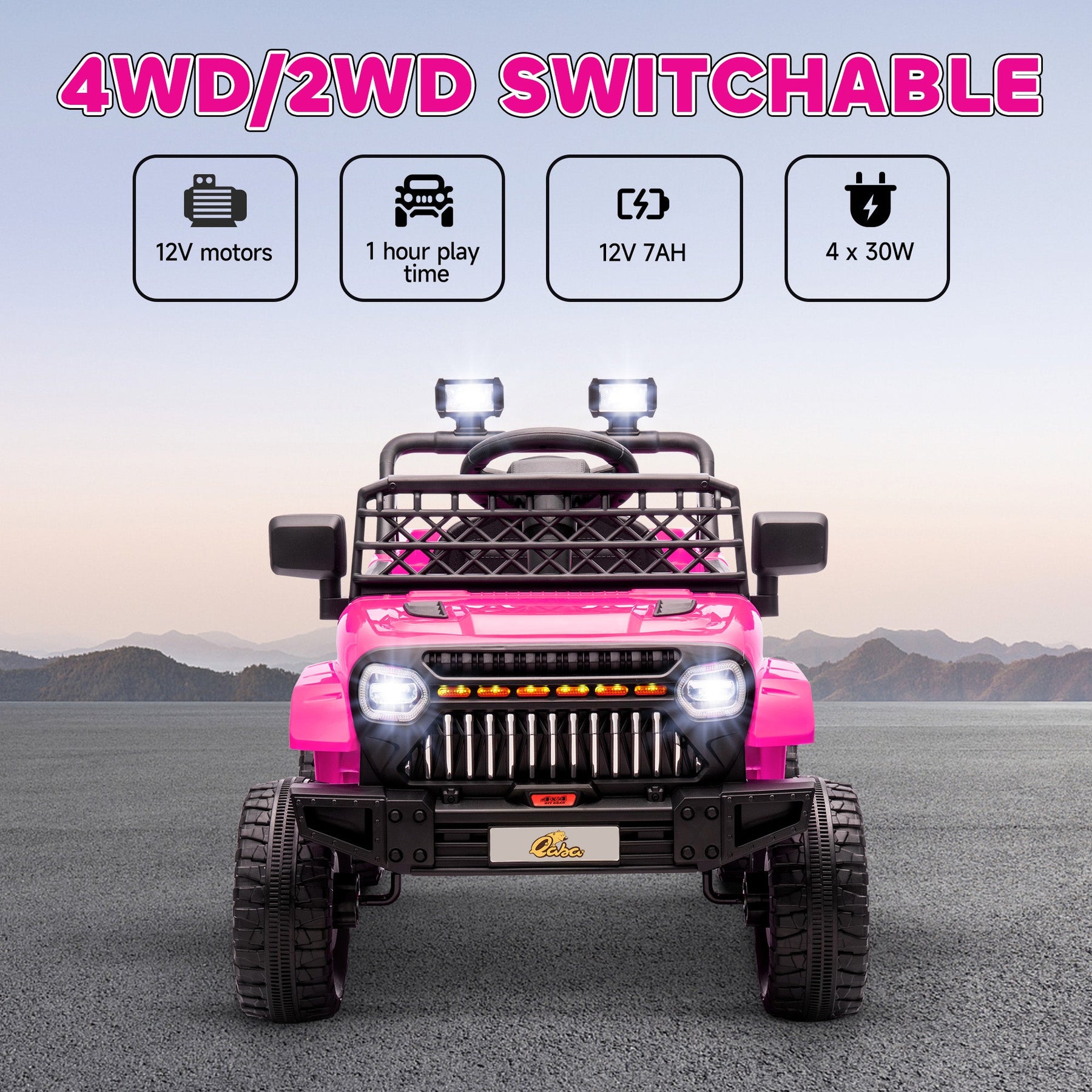 • 12V four motors and a 12V 7AH battery for up to 1 hour of ride time