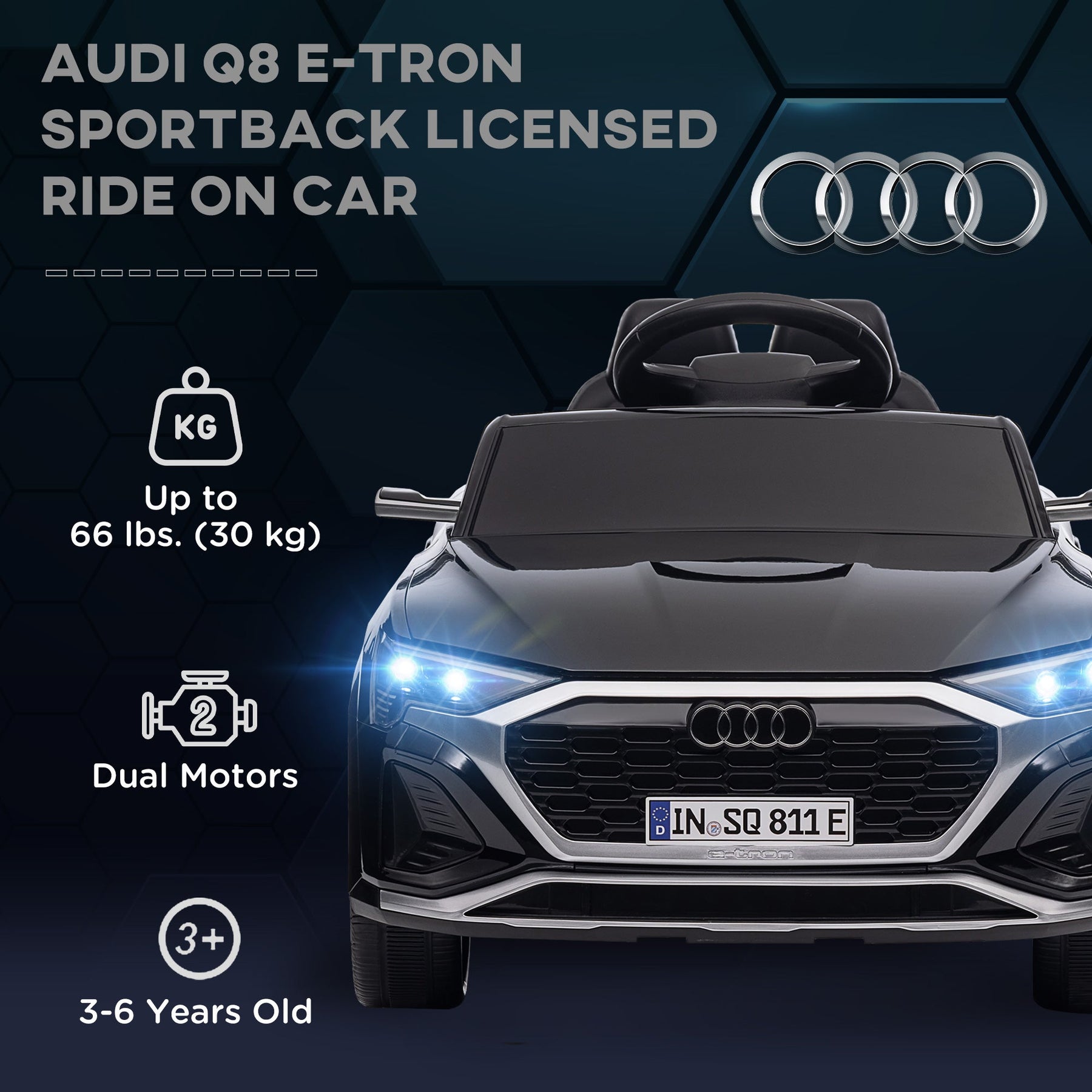 • Officially licensed Audi Q8 etron Sportback design for a luxurious, stylish ride