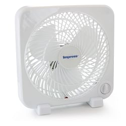 Stay cool and comfortable with the Impress 9-Inch Box Fan. This compact, efficient fan is perfect for personal use in small spaces. Its sleek white design fits seamlessly into any room decor, while the powerful airflow ensures effective cooling. Ideal for use in bedrooms, offices, or dorm rooms, this fan offers a convenient solution for hot days. Take advantage of our free shipping offer and keep cool with ease.