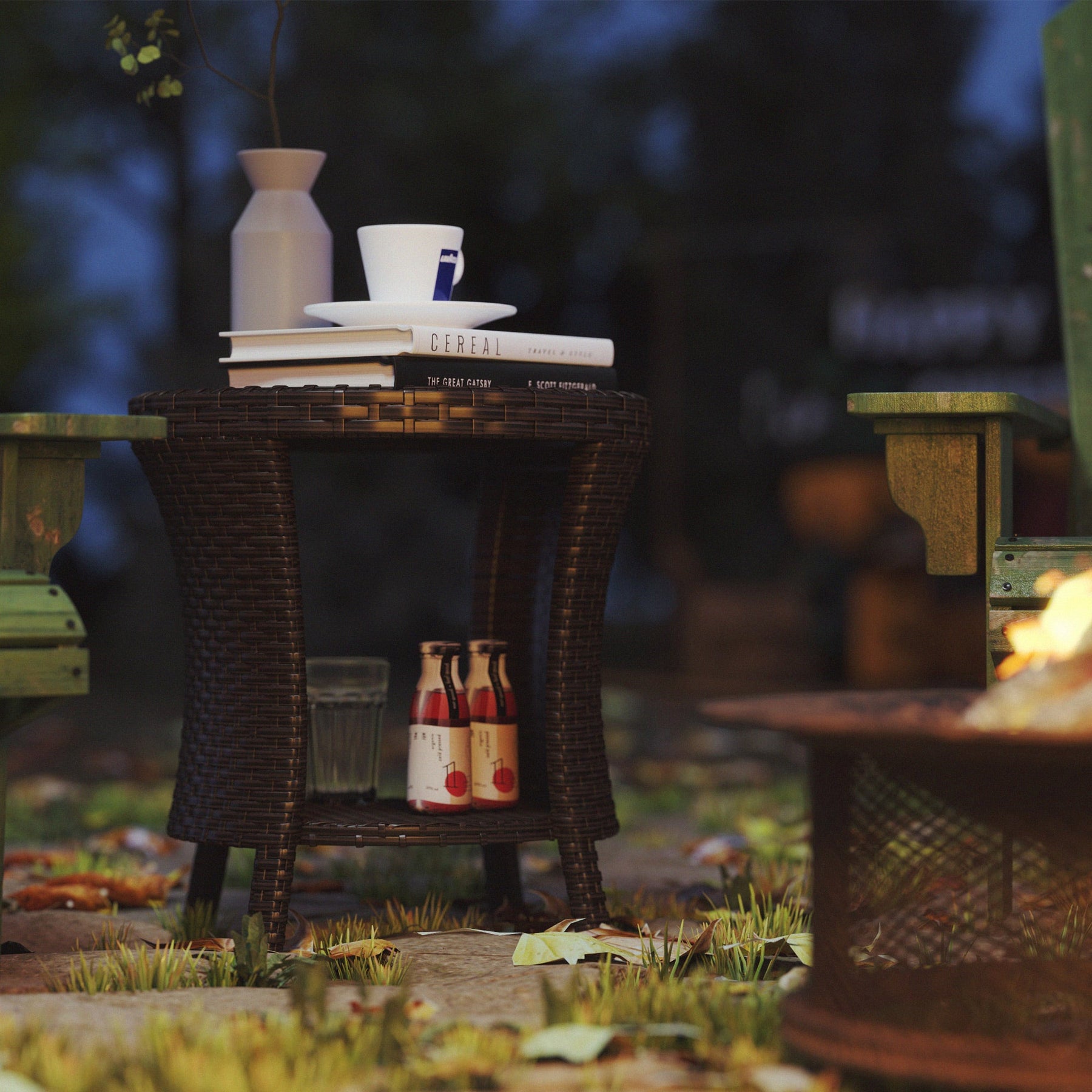Dual-Tier Storage: Offers extra storage with a bottom shelf featuring rattan sides, perfect for drinks or outdoor entertainment.