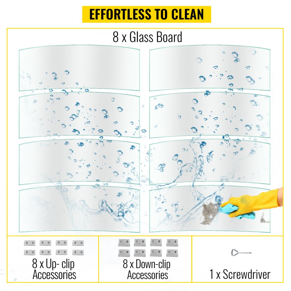 Tempered Glass & Aluminum Alloy: Thick 1/4-inch clear tempered glass with strong aluminum alloy brackets for enhanced durability and safety