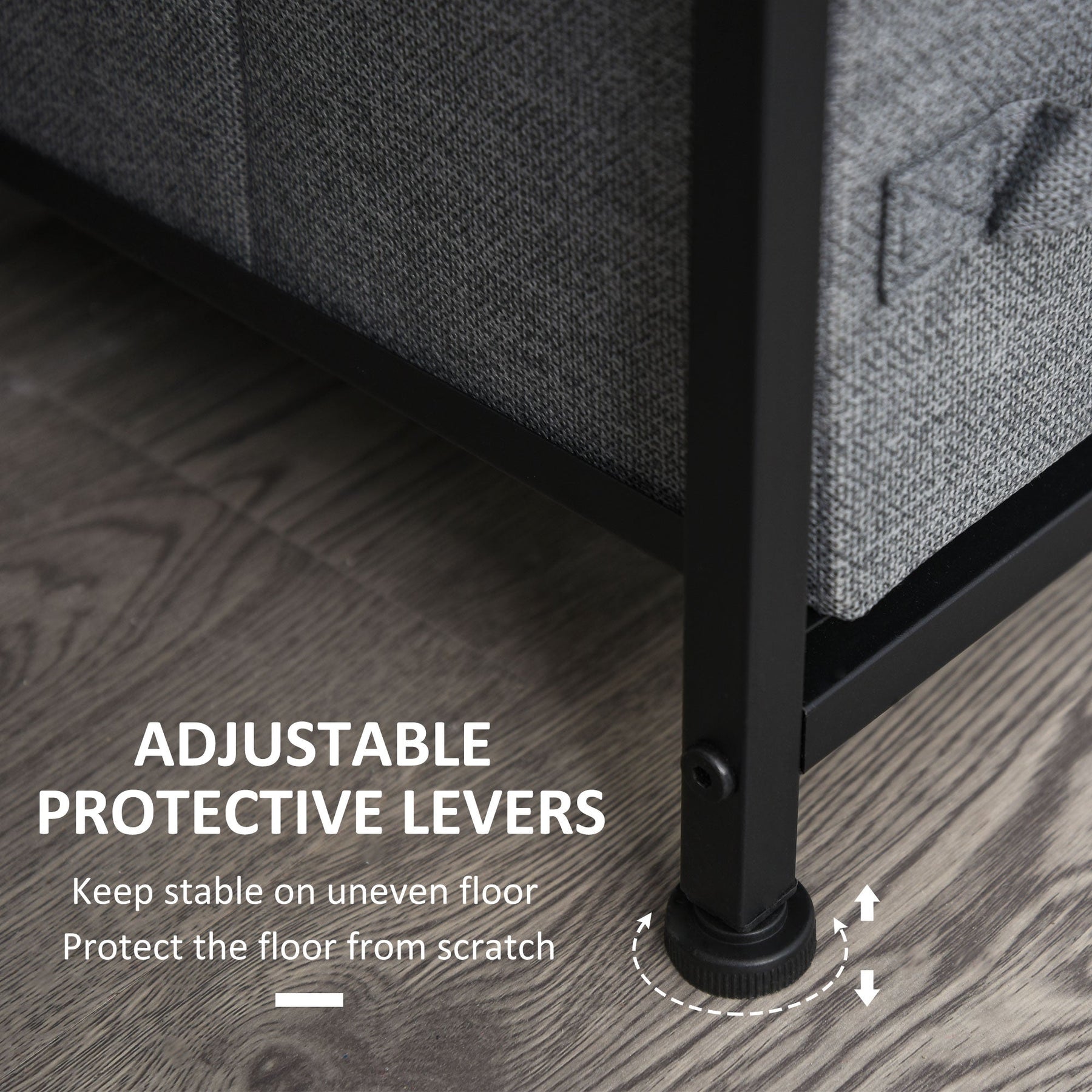 This 7-drawer dresser is the perfect storage solution for small spaces such as apartments, condos, or dorm rooms. It features seven fabric drawers—three large and four small—that provide ample storage for clothes, books, collections, and more. The sturdy construction, made from a powder-coated metal frame and melamine-coated particle board top, ensures durability and easy maintenance. The adjustable foot pads help maintain stability on uneven floors. The modern combination of dark grey fabric, brown wood grain panel, and black frame brings a pleasing and cohesive look to your home decor. With easy assembly, you can quickly set up this dresser in your bedroom, living room, or any other room that needs additional storage. The overall dimensions are 25" W x 11.8" D x 28" H, with a weight capacity of 55 lbs (25 kg).