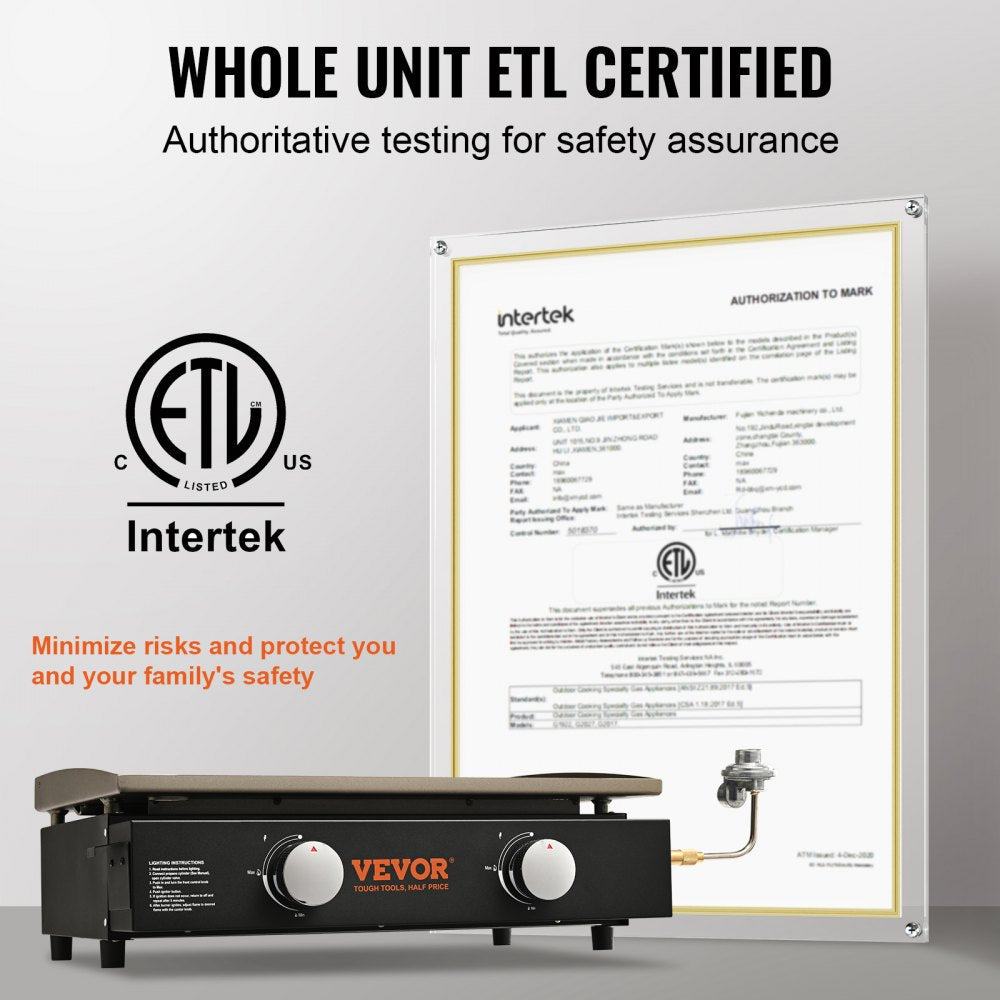 Boost your kitchen’s grilling power with the VEVOR 22.4" Commercial Gas Griddle. Crafted with a high-quality hot-rolled steel plate and powered by a 22,000 BTU H-shaped burner, this flat top grill ensures even heat distribution and consistent cooking results. Ideal for restaurants, food trucks, or portable catering setups, it features a compact, countertop-friendly design with ETL certification for reliable performance.