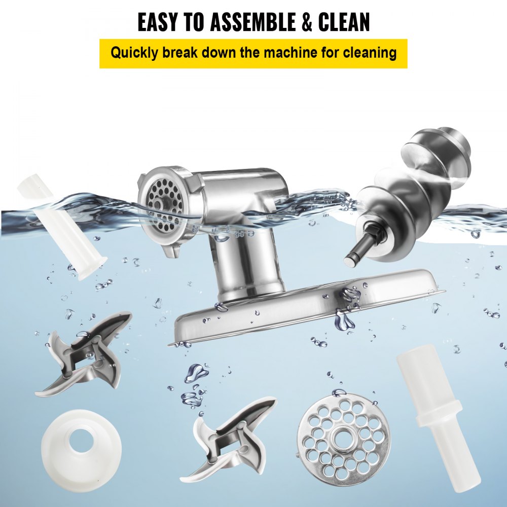 The VEVOR Electric Meat Grinder is a powerful, commercial-grade machine engineered for high-capacity meat processing. Equipped with a robust 1100W motor, it can process up to 160 kg/h, making it perfect for busy restaurants, butcher shops, and other commercial kitchens. Constructed from durable stainless steel, this heavy-duty grinder is built to withstand continuous use. Its multifunctional design allows it to operate as a sausage maker and meat mincer, offering versatility and reliability for all your meat preparation needs.