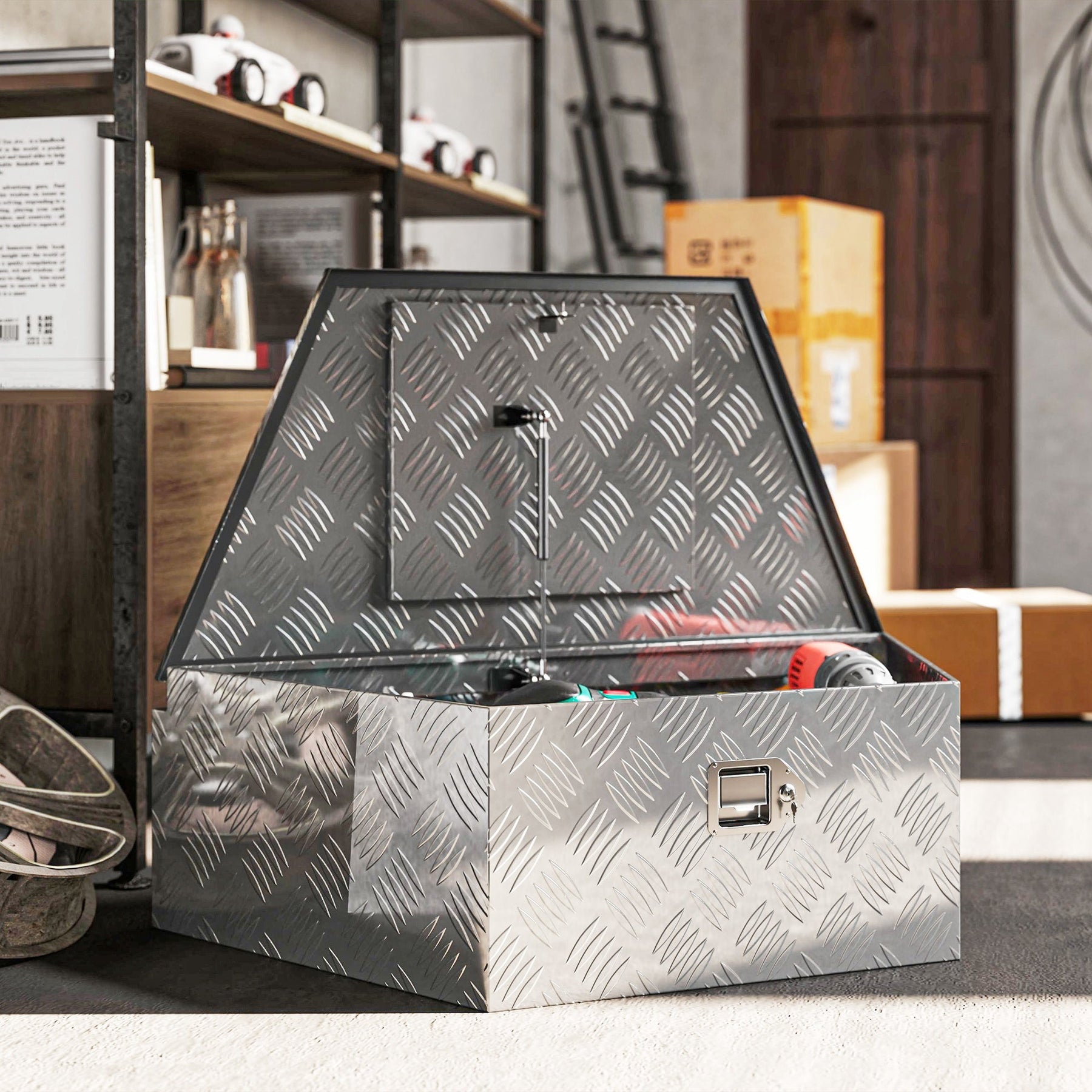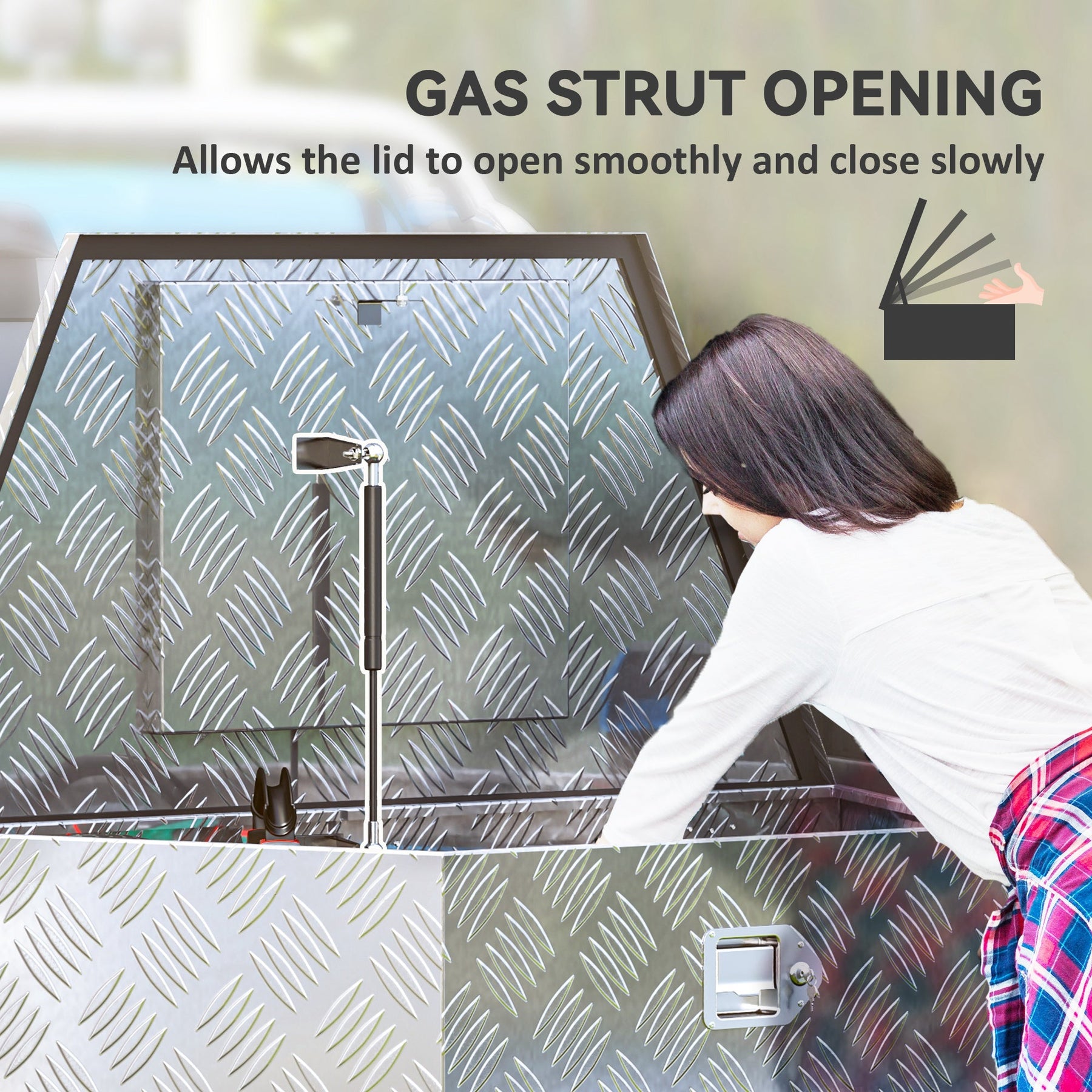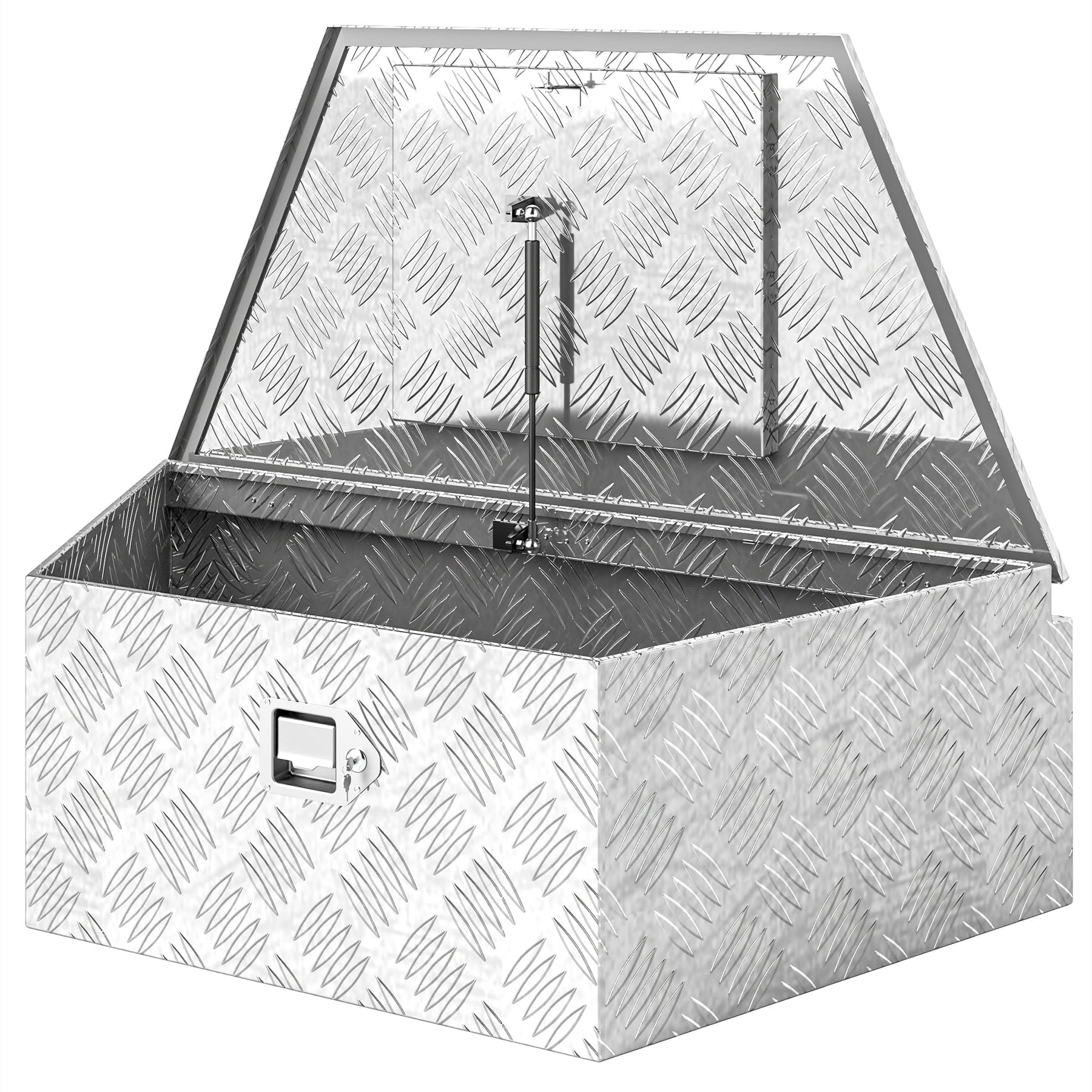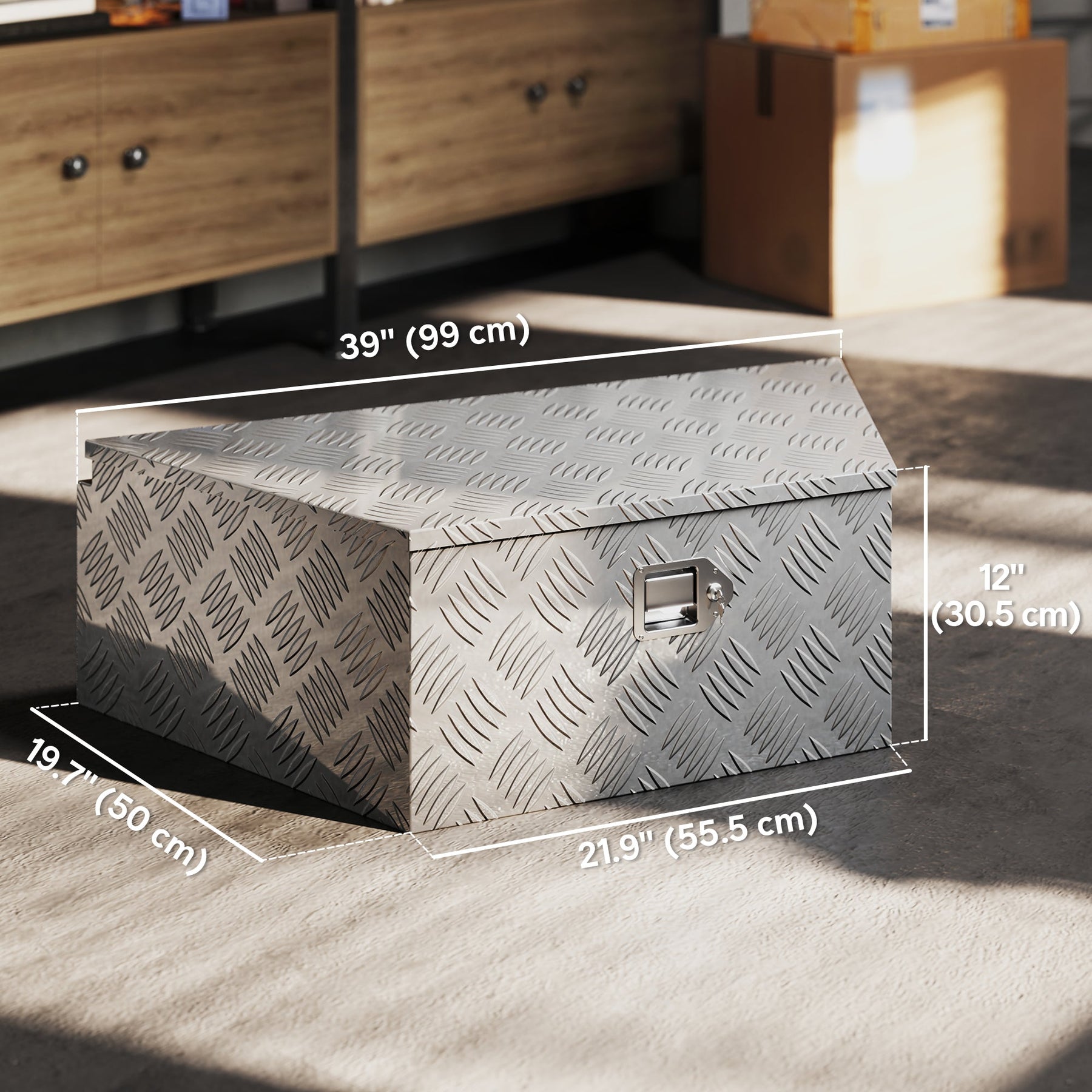 HOMCOM 39" Trapezoid Truck Tool Box Heavy Duty Aluminum Trailer Tongue Box with Lock and Keys for Pick Up Truck RV Trailer