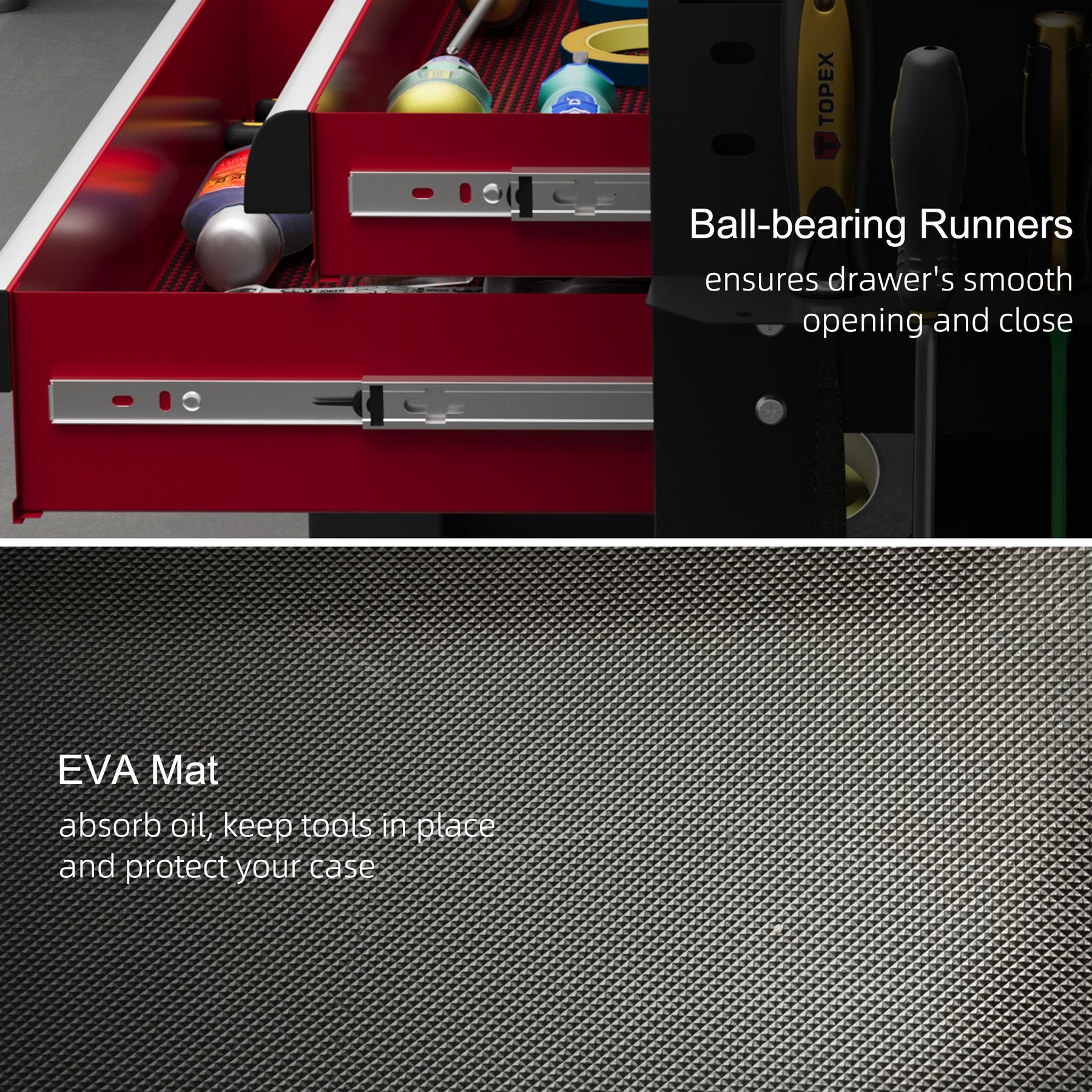 • Lockable top storage compartment with 2 keys ensures secure tool storage