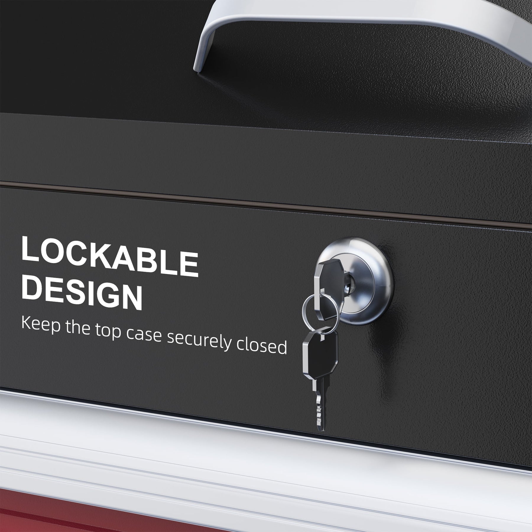 HOMCOM Tool Cart on Wheels Service Cart with 2 Drawers Tray Lockable Flip Top Storage for Garage Warehouse Workshop Black