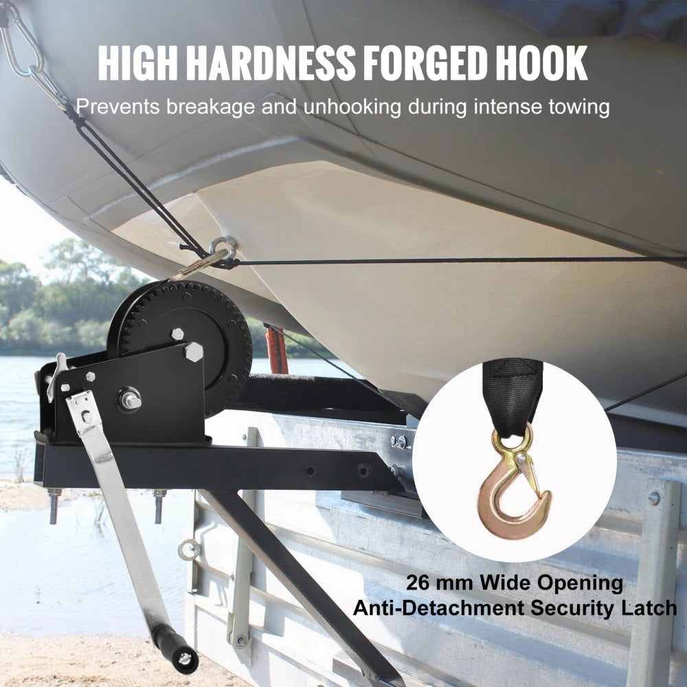 This VEVOR hand winch delivers reliable and powerful performance with a 3500 lbs pulling capacity. Featuring a durable rope crank with a 33 ft polyester strap and a versatile two-way ratchet mechanism, it’s perfect for towing boats, ATVs, trailers, and more. The sturdy hook ensures secure holding, and the easy-to-mount base provides quick setup and stable operation.