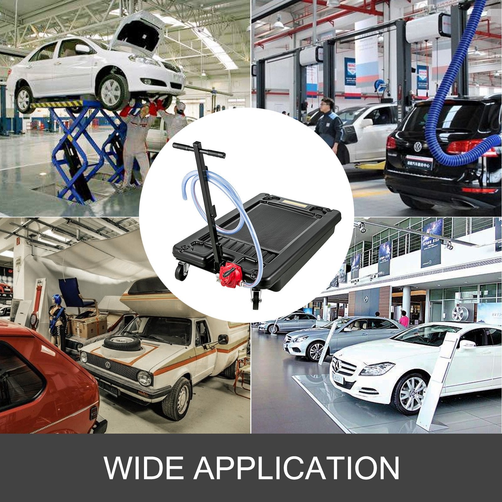 The VEVOR Low Profile Oil Drain Pan is a highly durable, 17-gallon capacity pan designed for efficient oil changes and fluid collection. Its low-profile design provides easy access and maneuverability under vehicles, while the foldable feature allows for convenient storage when not in use. Equipped with an 8-foot hose, this drain pan makes draining and transferring fluids effortless. Built for durability and ease of use, it’s an essential tool for professional mechanics and DIY enthusiasts alike.