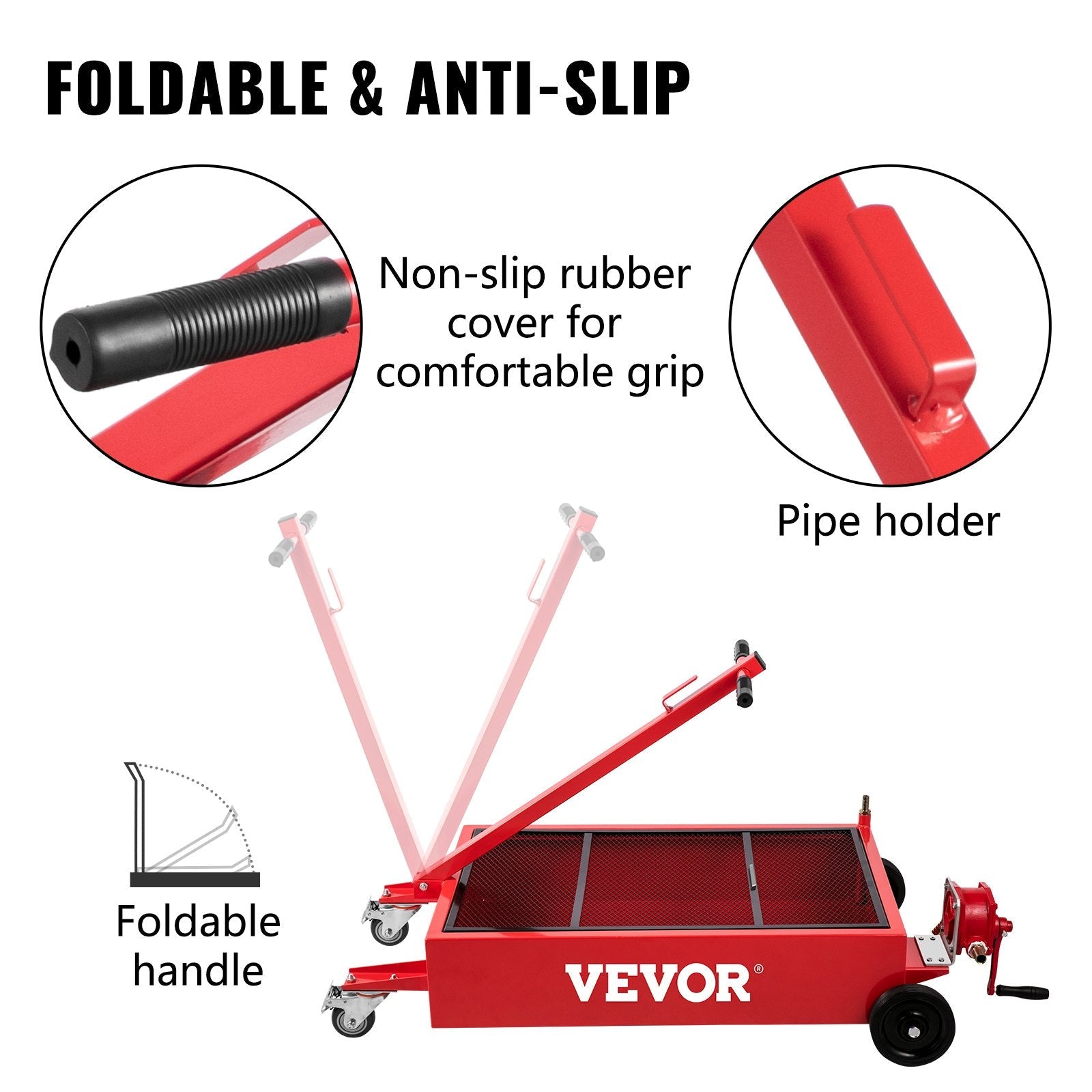 Efficiently manage oil changes with the VEVOR Oil Drain Pan, a 20-gallon (76L) low-profile oil drain tank built for cars, SUVs, and trucks. Designed with a large-capacity reservoir, it’s ideal for handling multiple oil changes without frequent emptying. The integrated pump and hose make fluid transfer fast and hassle-free, while swivel casters and a foldable handle provide smooth mobility and compact storage. Built for durability and ease of use, it's perfect for both professional garages and DIY mechanics.