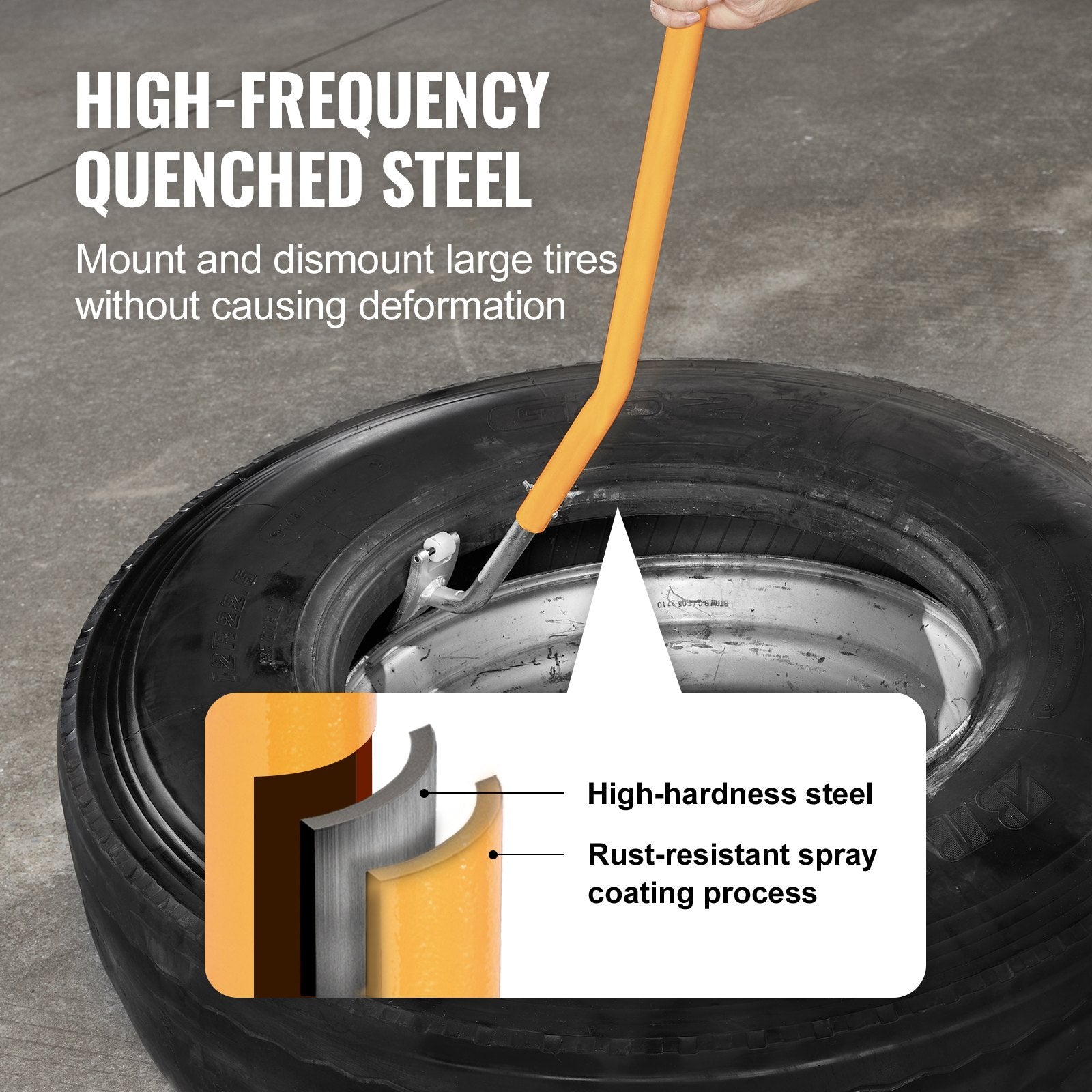Effortlessly handle large truck tires with the VEVOR Tire Mount Demount Tool, designed for professional and DIY use. This heavy-duty manual tire changer kit includes a bead breaker and extra bead keeper to protect rims during mounting and demounting. Built with sturdy steel construction, it ensures reliable performance while making tire changes smooth and safe.