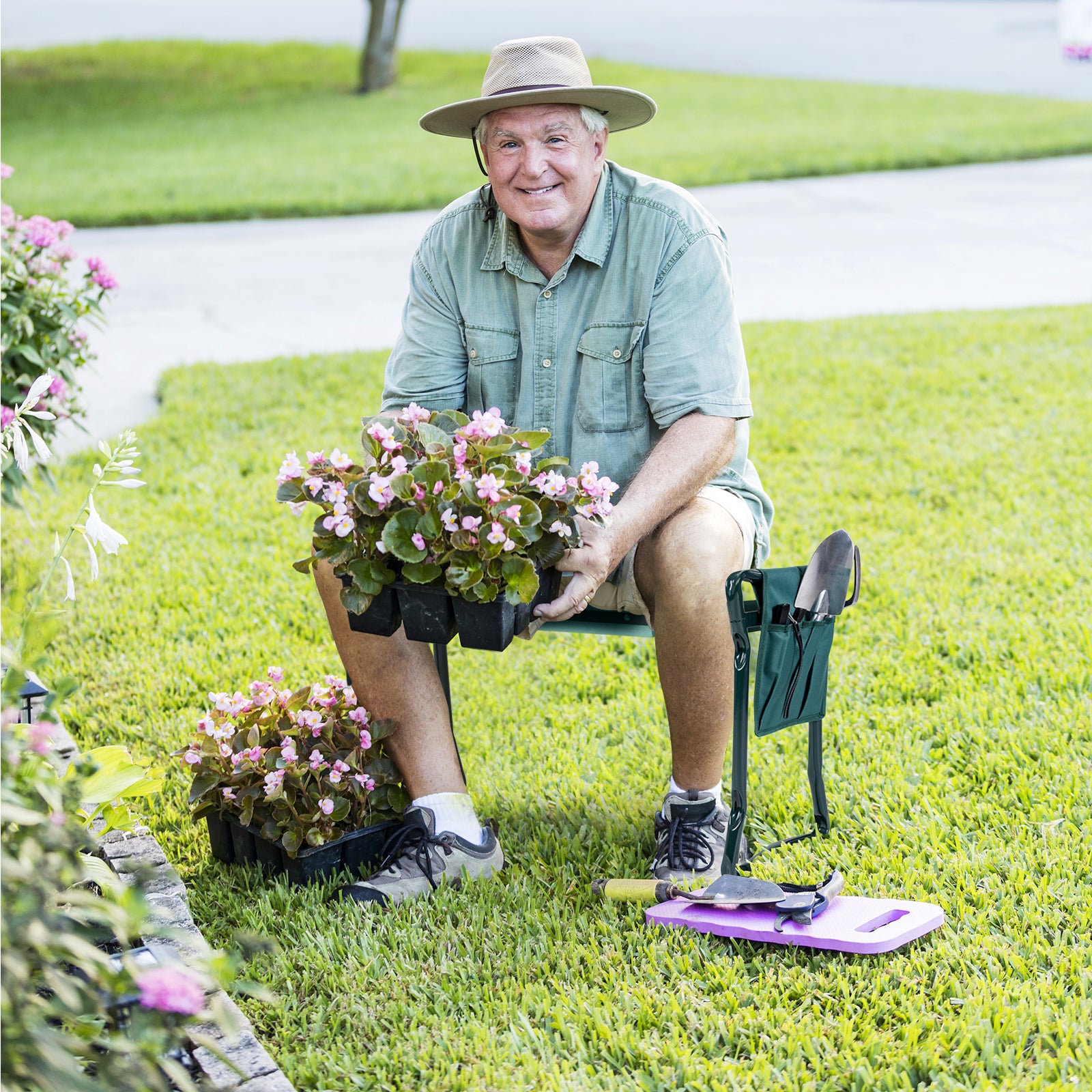 Folding Design: The stool kneeler easily folds into a compact size (23" x 10.5" x 5.5"), allowing for convenient storage and transport. A handy handle makes it easy to move from one location to another.