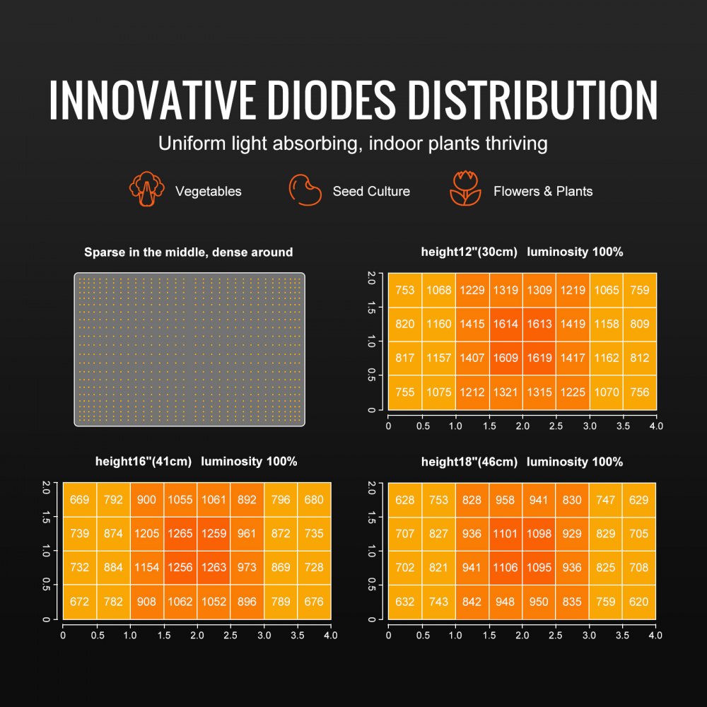 PPFD: ≥1300umol/m²/s (0.6x1.2)
