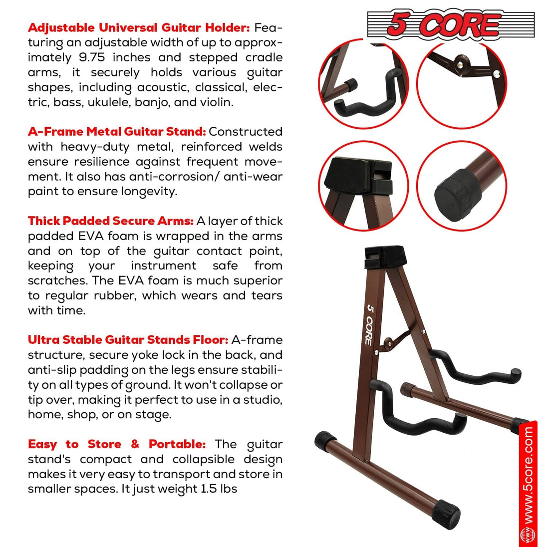 5Core Guitar Stand Floor A Frame Electric Acoustic Bass Soporte Para Guitarra BROWN