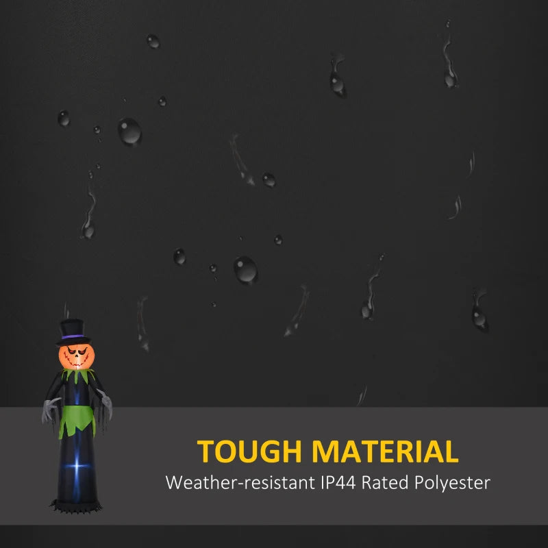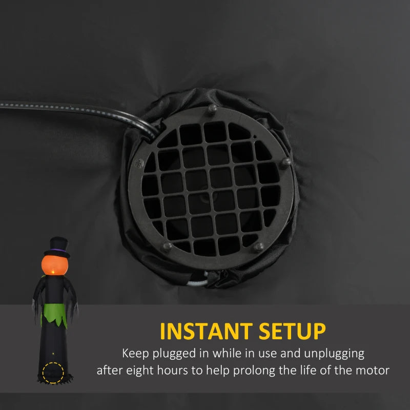 Elevate your Halloween décor with the Outsunny 8ft Inflatable Pumpkin Head Ghost in a Hat. This eye-catching blow-up decoration is perfect for outdoor use, featuring a large glowing pumpkin head and classic ghost body, all topped with a spooky hat. Built-in LED lights illuminate the figure at night, creating an eerie ambiance for your yard, garden, or porch. Easy to set up and durable, it adds festive charm and fun fright to your Halloween celebrations.