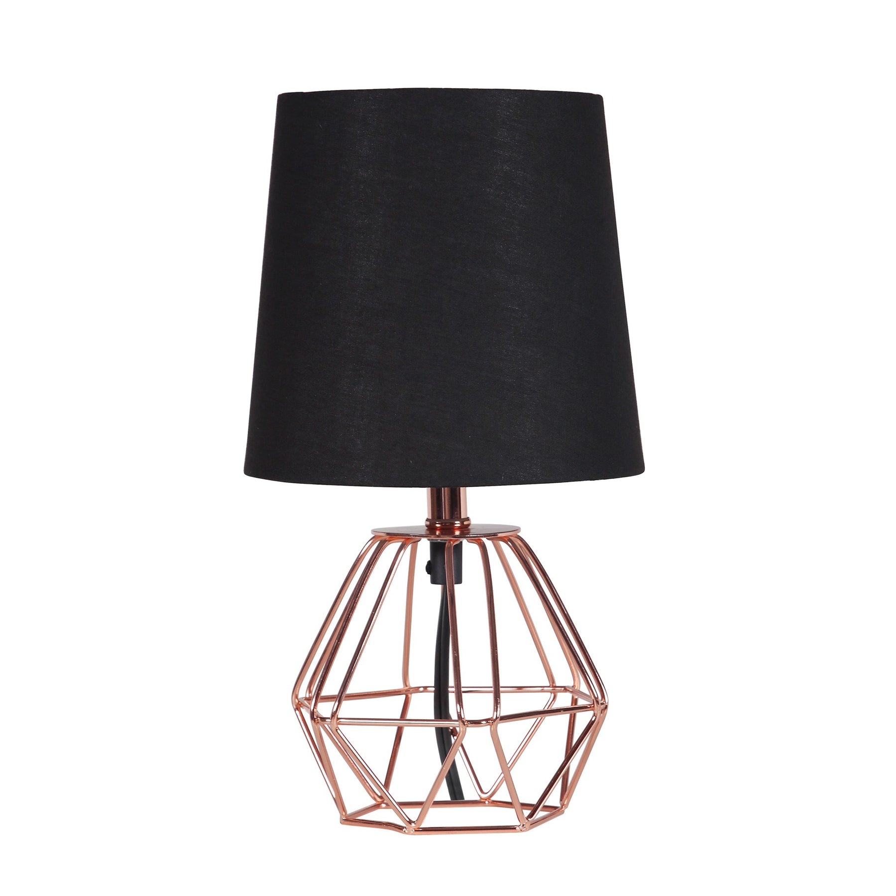 This 11" copper bedside table lamp with black empire shade is the perfect combination of design and function. Includes a black fabric, empire shaped shade, making this a fashionable piece that will complement most any interior. Bedside table lamps help to add a soft and cozy glow to your bedroom. Great for evening reading! High quality design makes this a great lamp for not only lighting, but accenting a room with style. Bring some lite and good vibes into your space with this updated and stylishly designed lamp. 11.25" H x 6.5" W x 6.5" D