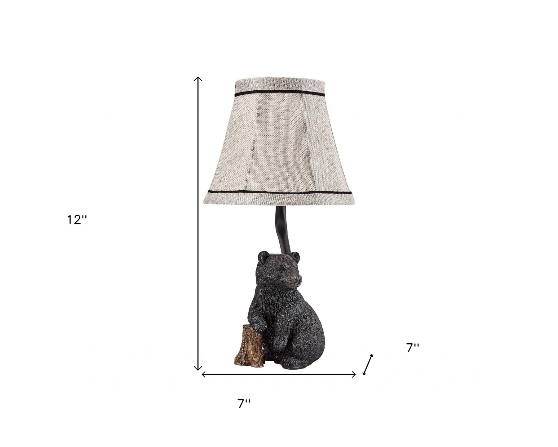 This 12-inch black animals table lamp with tan bell shade is a great way to add some brightness to any corner of your home. Includes a tan fabric, bell shaped shade, making this a fashionable piece that will complement most any interior. The light that this lamp throws is soft and warm to elevate the look of most any space in your home. The perfect lamp to create just the right natural and soothing light in your space. 12-inch H x 7-inch W x 7-inch D