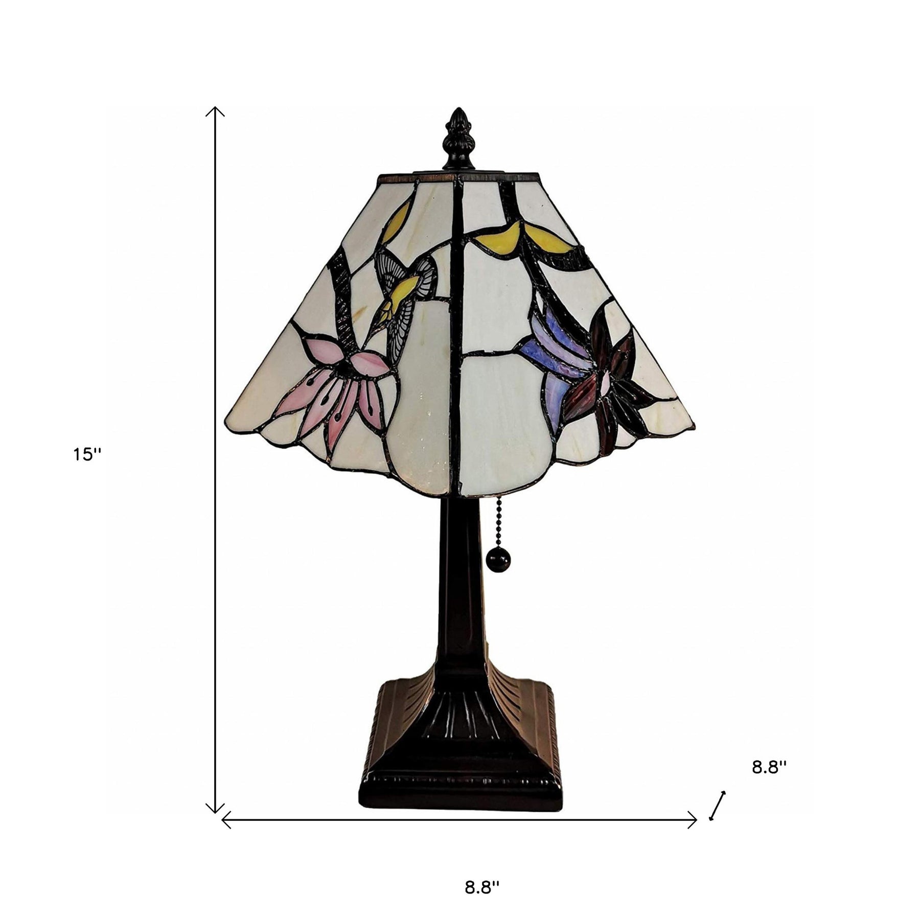 This 15-inch dark brown candlestick table lamp with ivory and red birds novelty shade is a great way to add some brightness to any corner of your home. The base of this lamp is made of resin finished in a dark brown tone. The ivory and red novelty glass shade is finishes this piece off nicely and symmetrically this standard table lamp is designed to provide general lighting to the area. Use this lamp anywhere and elevate the look of the whole space. It is perfect for virtually any decor. 15-inch H x 8.8-inch W x 8.8-inch D
