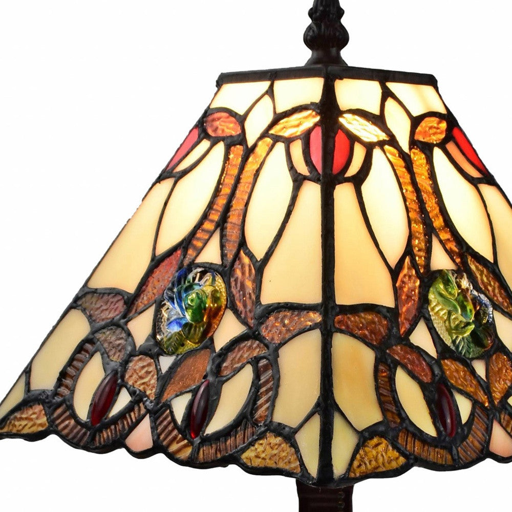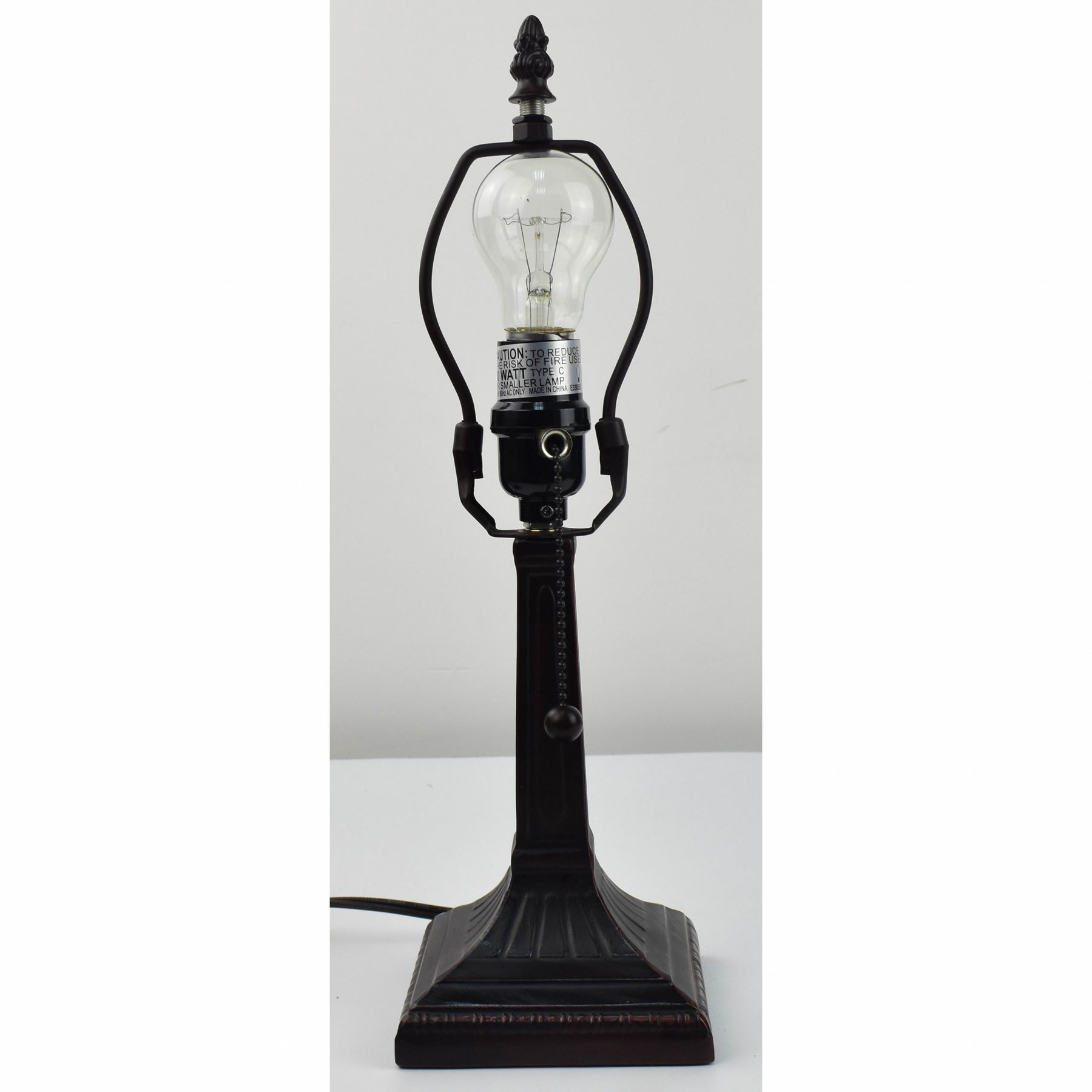 Truly a mix of design and functionality that doesn't compromise on style, this 15-inch dark brown metal candlestick table lamp with beige shade will be a great addition to your space. The lamp is made of sturdy metal and features a dark brown color. This standard table lamp is designed to provide general lighting to the area. High quality design makes this a great lamp for not only lighting, but accenting a room with style. The perfect lamp to create just the right natural and soothing light in your space. 15-inch H x 14-inch W x 9-inch D