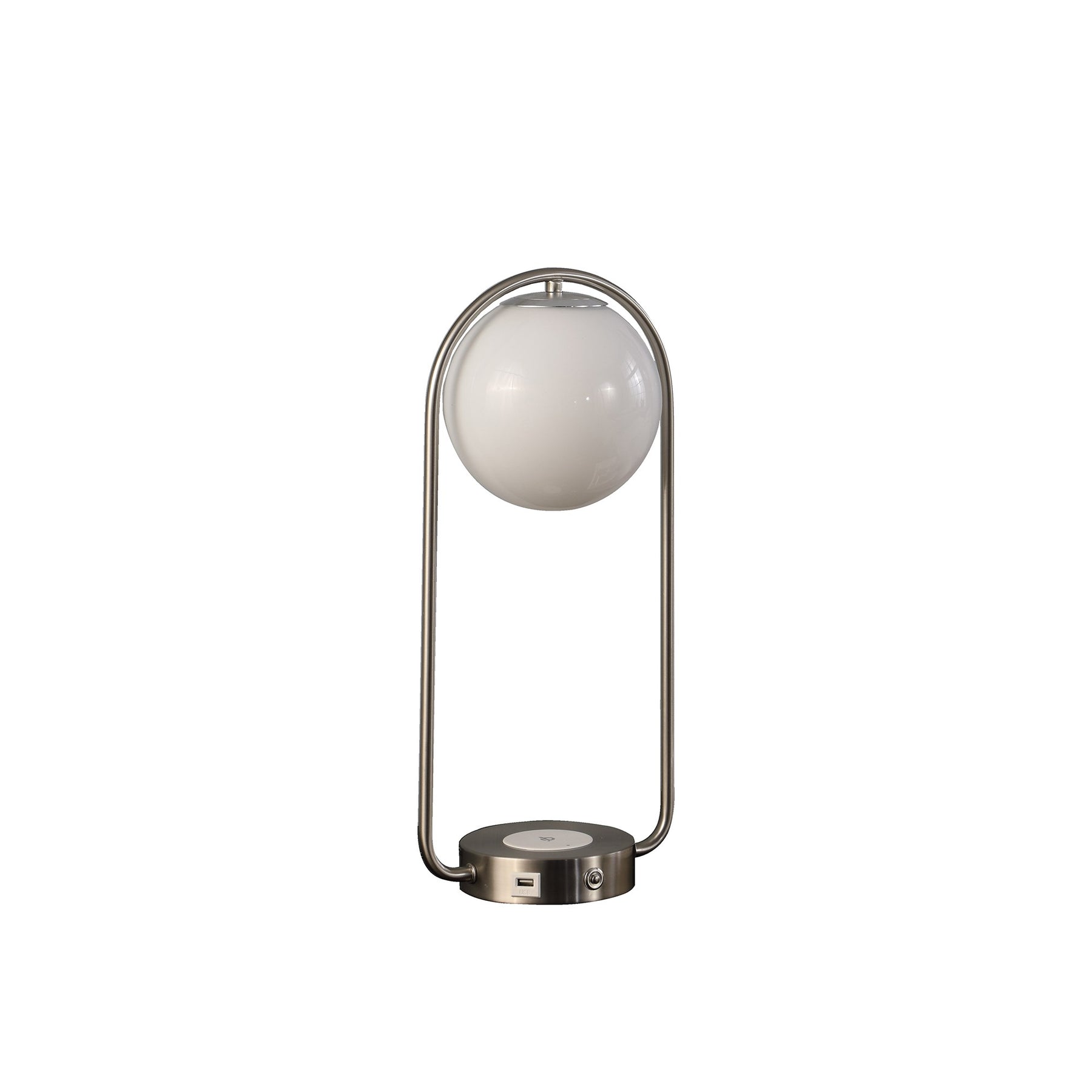 With this 19" silver clip globe USB table lamp you can bring in design to any space along with adding some ambient lighting. Modern in design, this globe table lamp is designed as simple sphere that lights from within inside an elongated oval clip design. The included USB port and charging station add to the function of this cool contemporary lamp. High quality design makes this a great lamp for not only lighting, but accenting a room with style. It is perfect for virtually any decor. 19.25" H x 5.5" W x 9" D