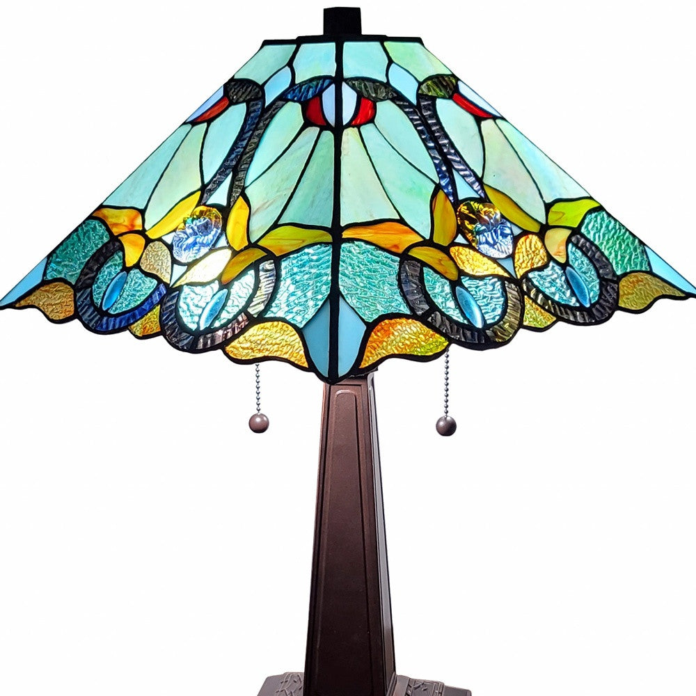 This 22-inch dark brown metal two light candlestick table lamp with green shade is a great way to add some brightness to any corner of your home. The base of this lamp is made of dark brown metal. This standard table lamp is designed to provide general lighting to the area. The light that this lamp throws is soft and warm to elevate the look of most any space in your home. Bring some lite and good vibes into your space with this updated and stylishly designed lamp. 22-inch H x 21-inch W x 11-inch D