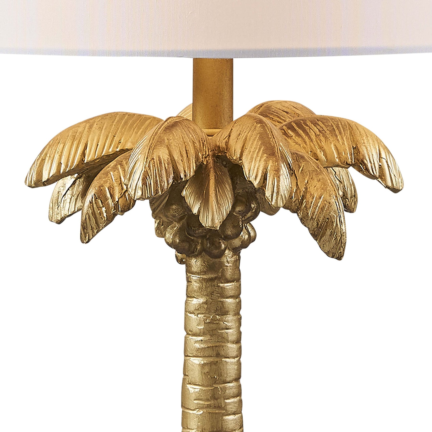 Add a touch of rustic natural beauty to your room with this 22" golden tropical coconut tree table lamp with white drum shade. The base of this lamp is made of resin in the shape of a tree and finished in a gold tone. The white shade has a drum shape and is made from fabric. Enjoy the textural beauty of this nature scene indoors everyday. The light that this lamp throws is soft and warm to elevate the look of most any space in your home. It is perfect for virtually any decor. 22.24" H x 11.81" W x 11.81" D