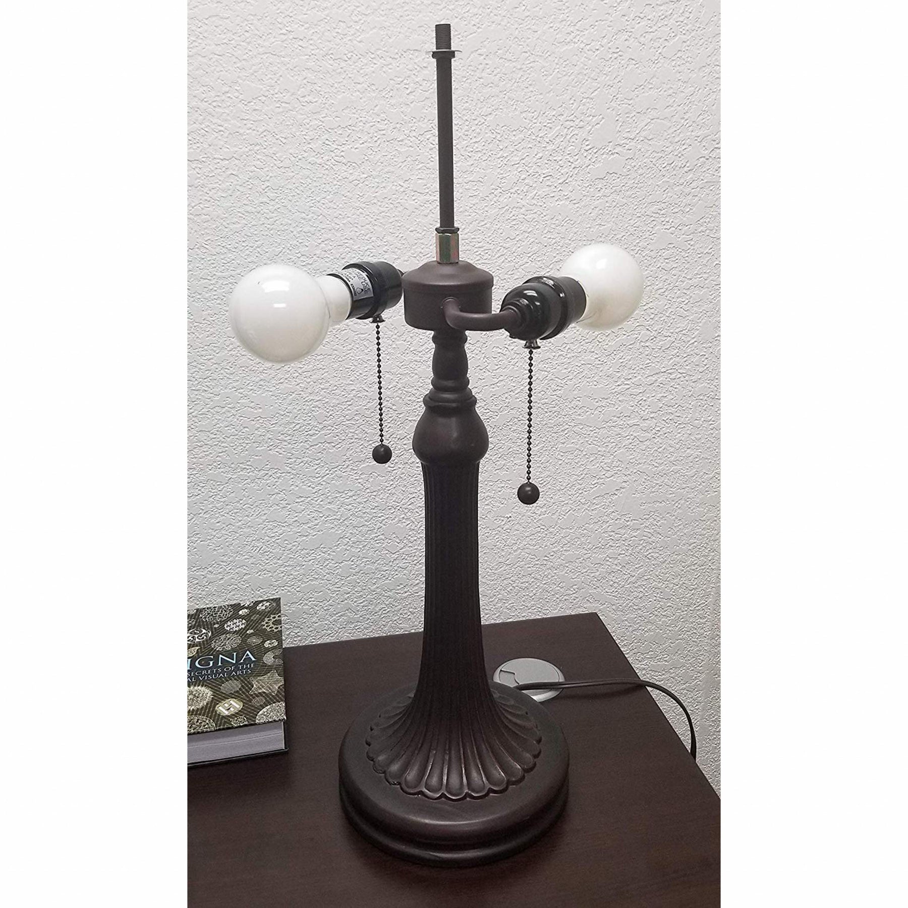 Embrace the good life with this hard working and stylish 23-inch dark brown metal two light candlestick table lamp with white shade. A gorgeous dark brown metal base brings just the right amount of pizzazz to this fabulous lamp. This standard table lamp is designed to provide general lighting to the area. High quality design makes this a great lamp for not only lighting, but accenting a room with style. It is perfect for virtually any decor. 23-inch H x 21-inch W x 12-inch D