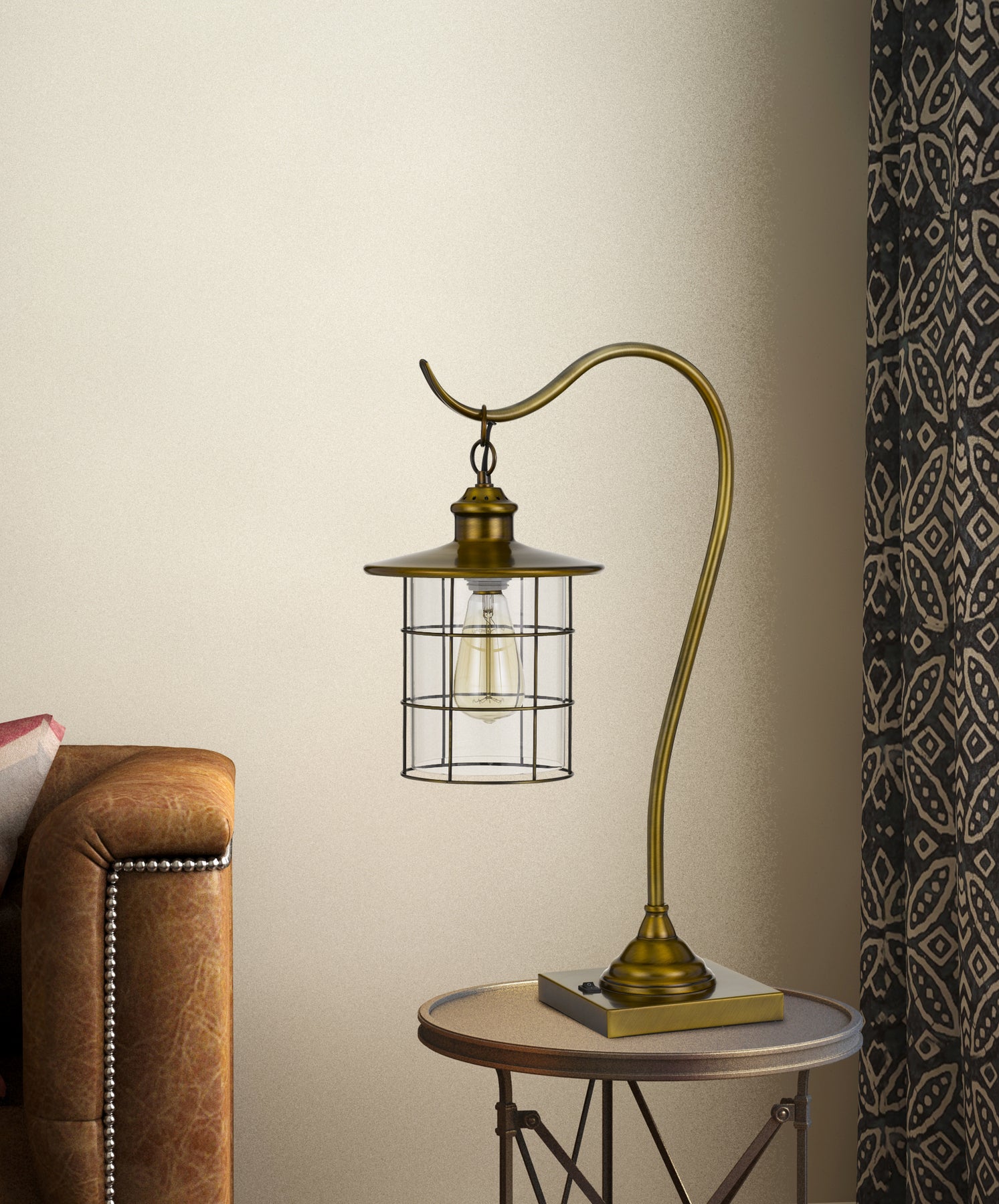 Embrace the good life with this hard working and stylish 25" antiqued brass metal desk table lamp with antiqued brass drum shade. The base of this lamp is made of antiqued brass metal. The antiqued brass drum glass shade is a great compliment to this lamp. This desk lamp provides 'task lighting' that will illuminate your working area for reading or writing. The light that this lamp throws is soft and warm to elevate the look of most any space in your home. It is perfect for virtually any decor. 25" H x 13.5" W x 8.5" D