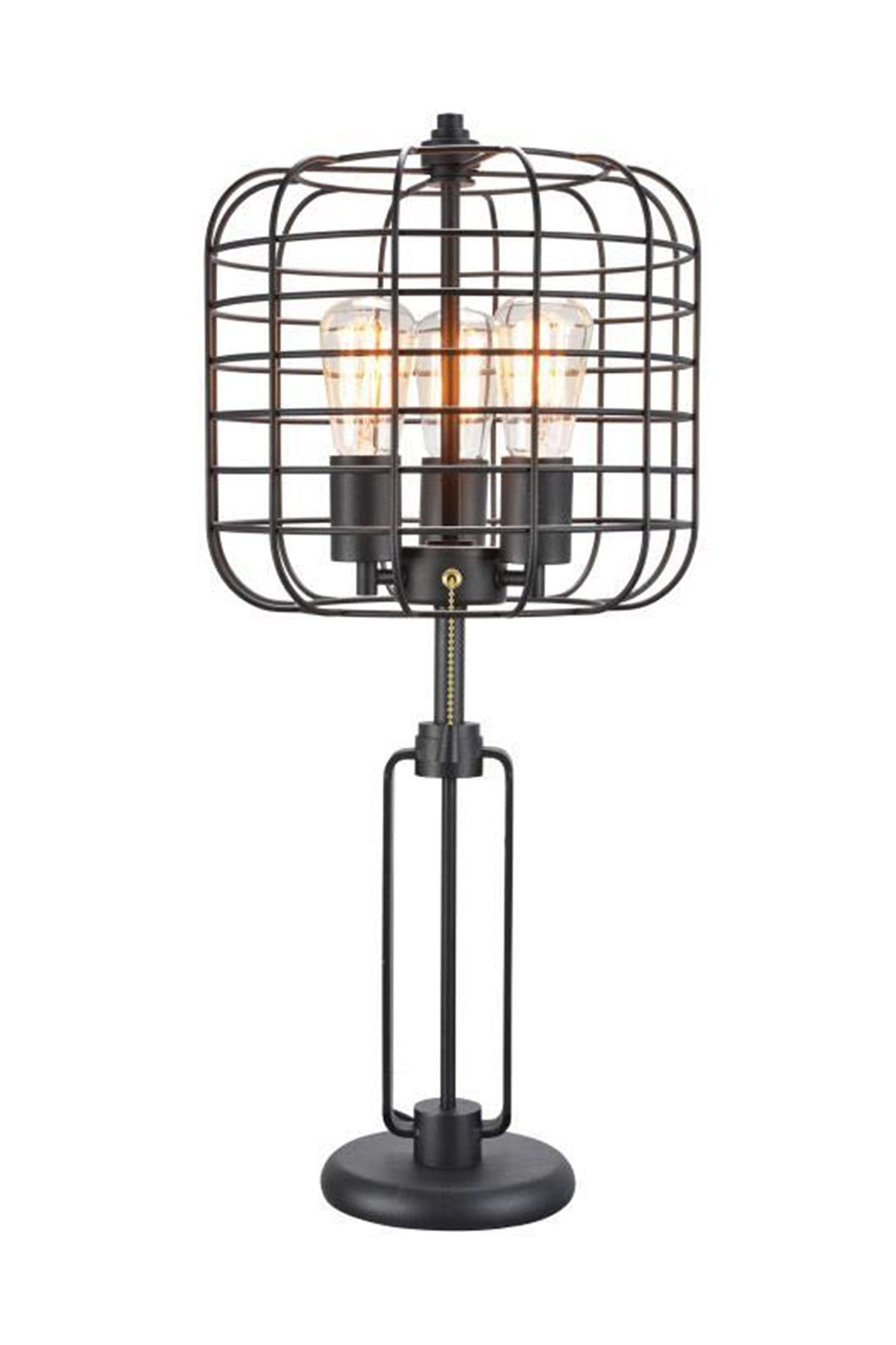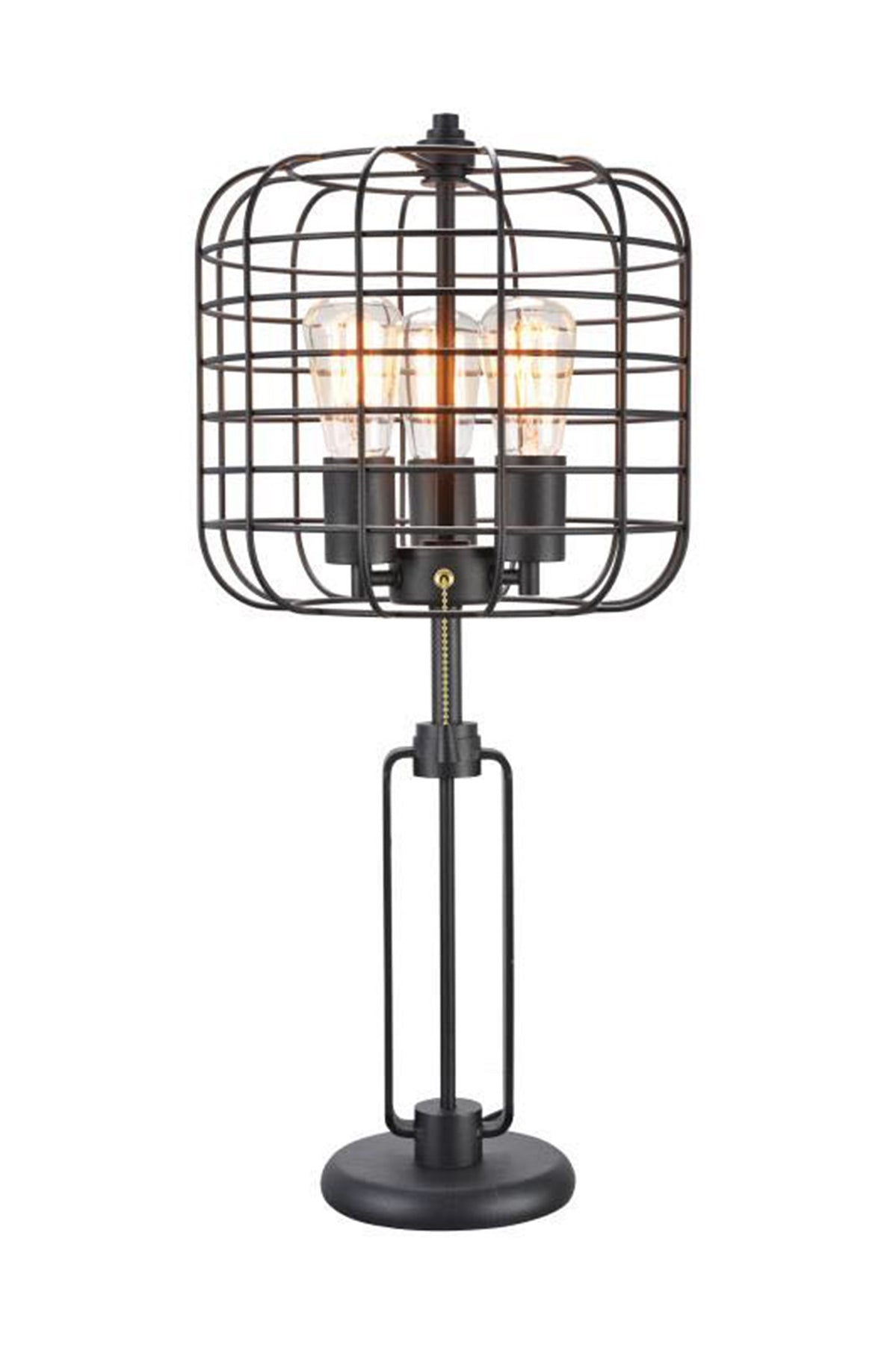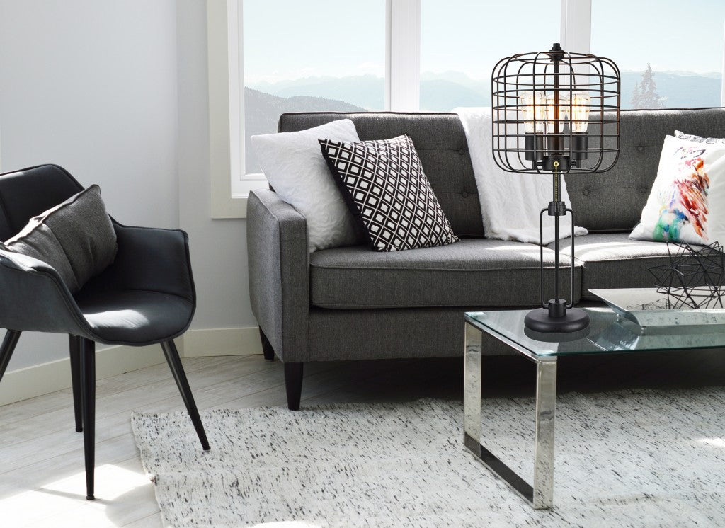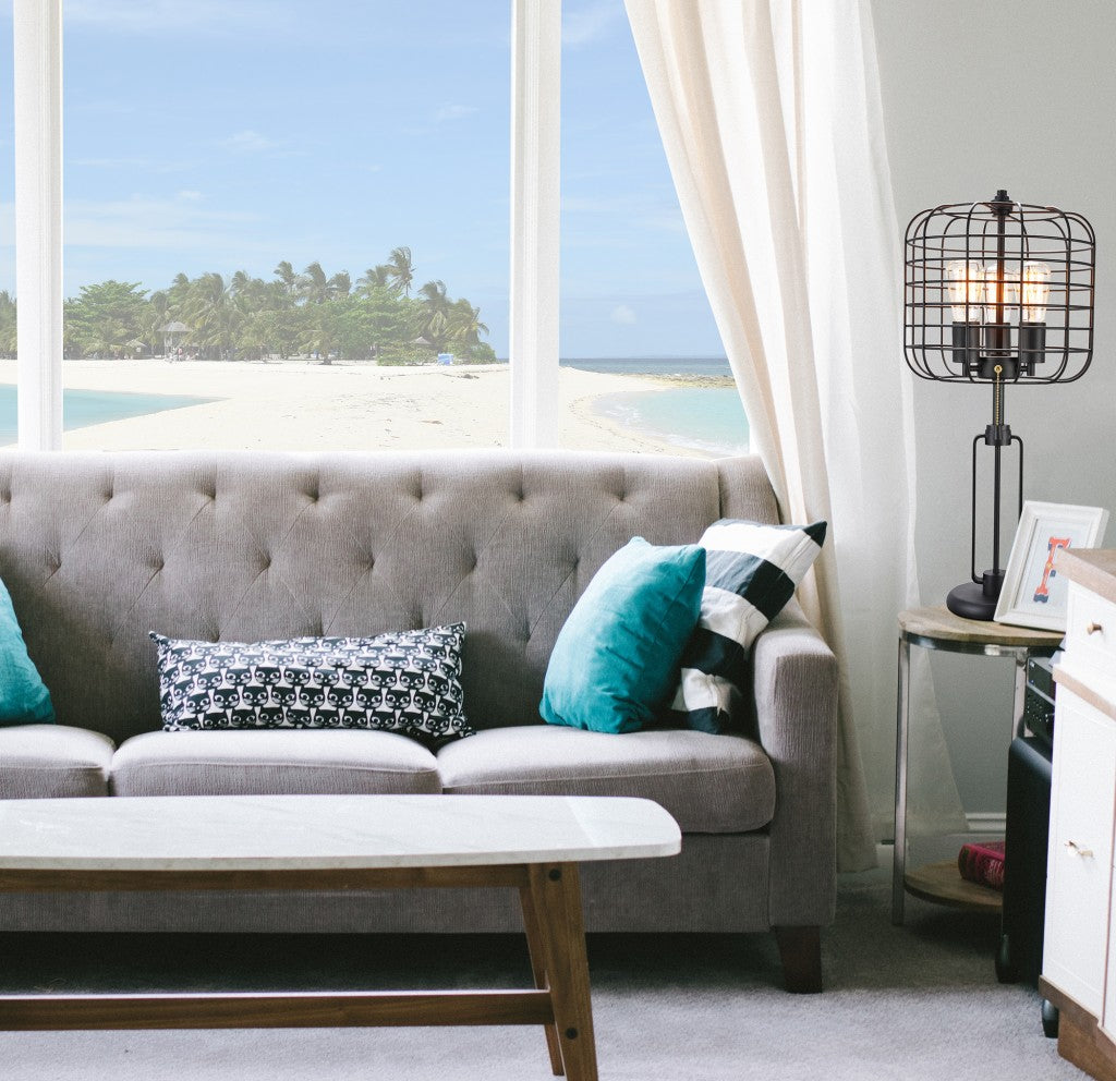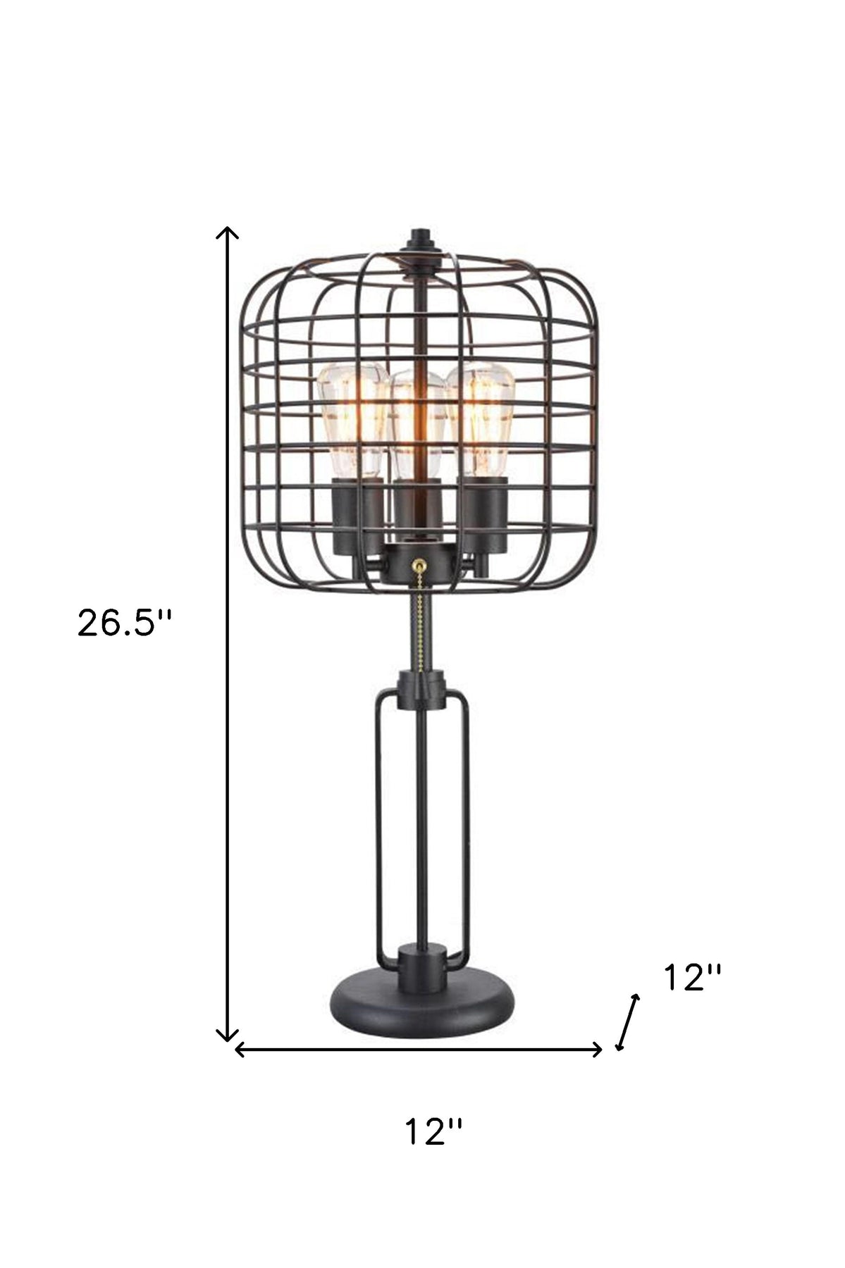 Add a bright anchor to your room with this 27" black metal industrial cage design three light table lamp. The base of this lamp is made of black metal and features a fun almost retro, industrial design sense that is sure to please. Bedside table lamps help to add a soft and cozy glow to your bedroom. Great for evening reading! Use this lamp anywhere and elevate the look of the whole space. It is perfect for virtually any decor. 26.5" H x 12" W x 12" D