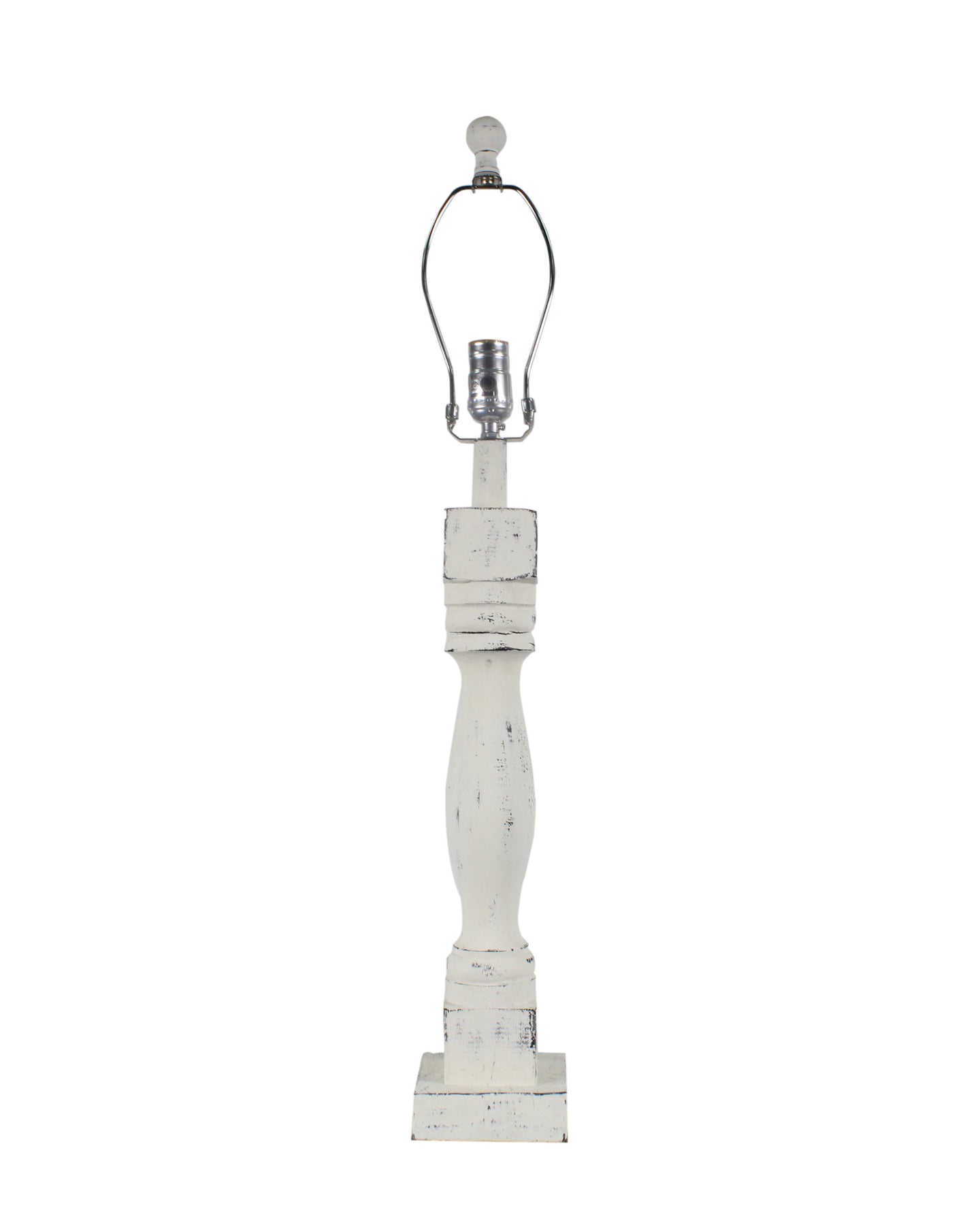Add a bright anchor to your room with this 30" distressed white table lamp with white and tropical fish empire shade. The base of this lamp is made of distressed white polyresin. This standard table lamp is designed to provide general lighting to the area. Use this lamp anywhere and elevate the look of the whole space. Bring some lite and good vibes into your space with this updated and stylishly designed lamp. 29.5" H x 12" W x 12" D