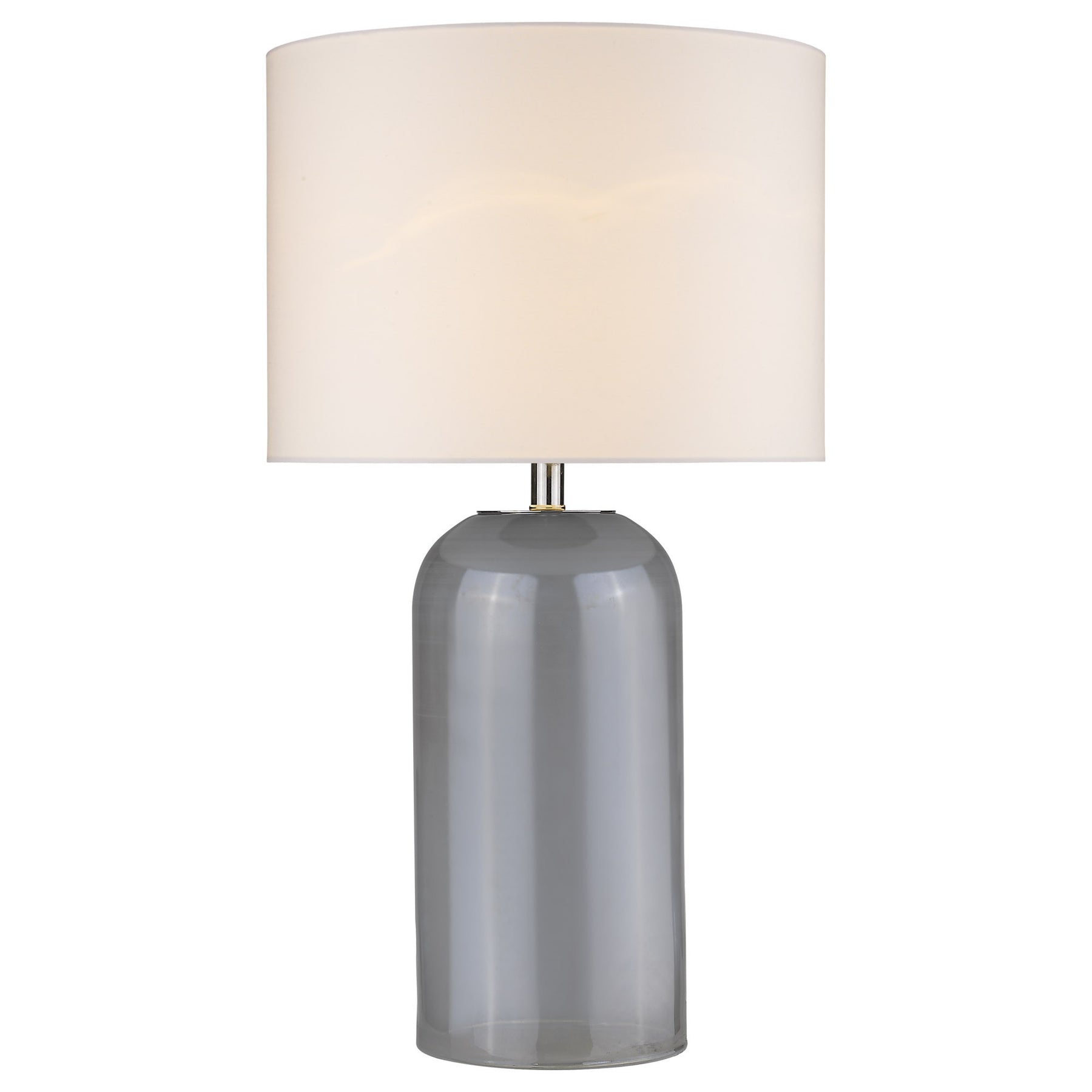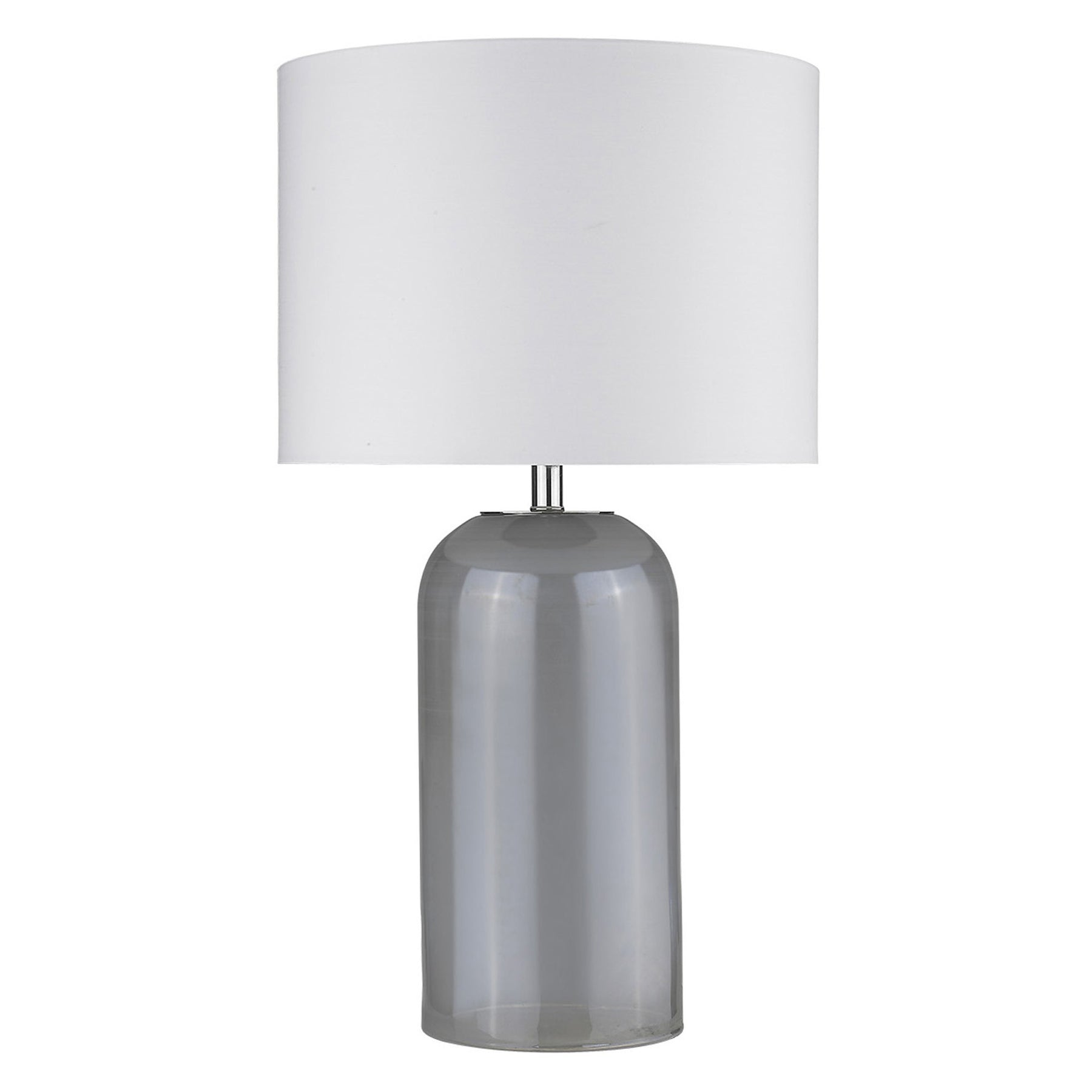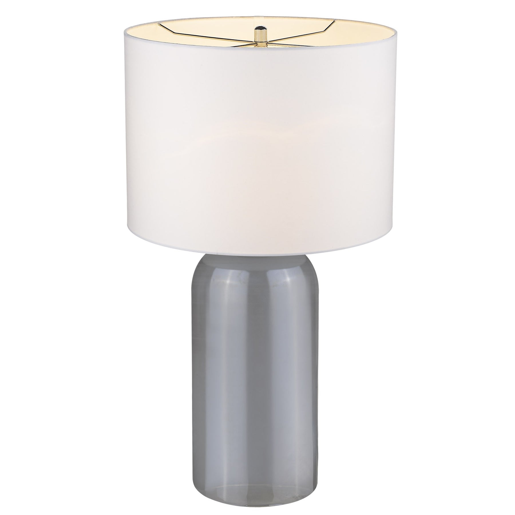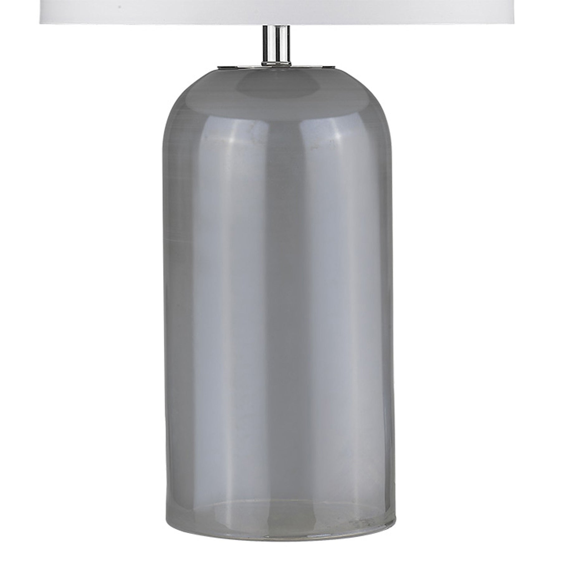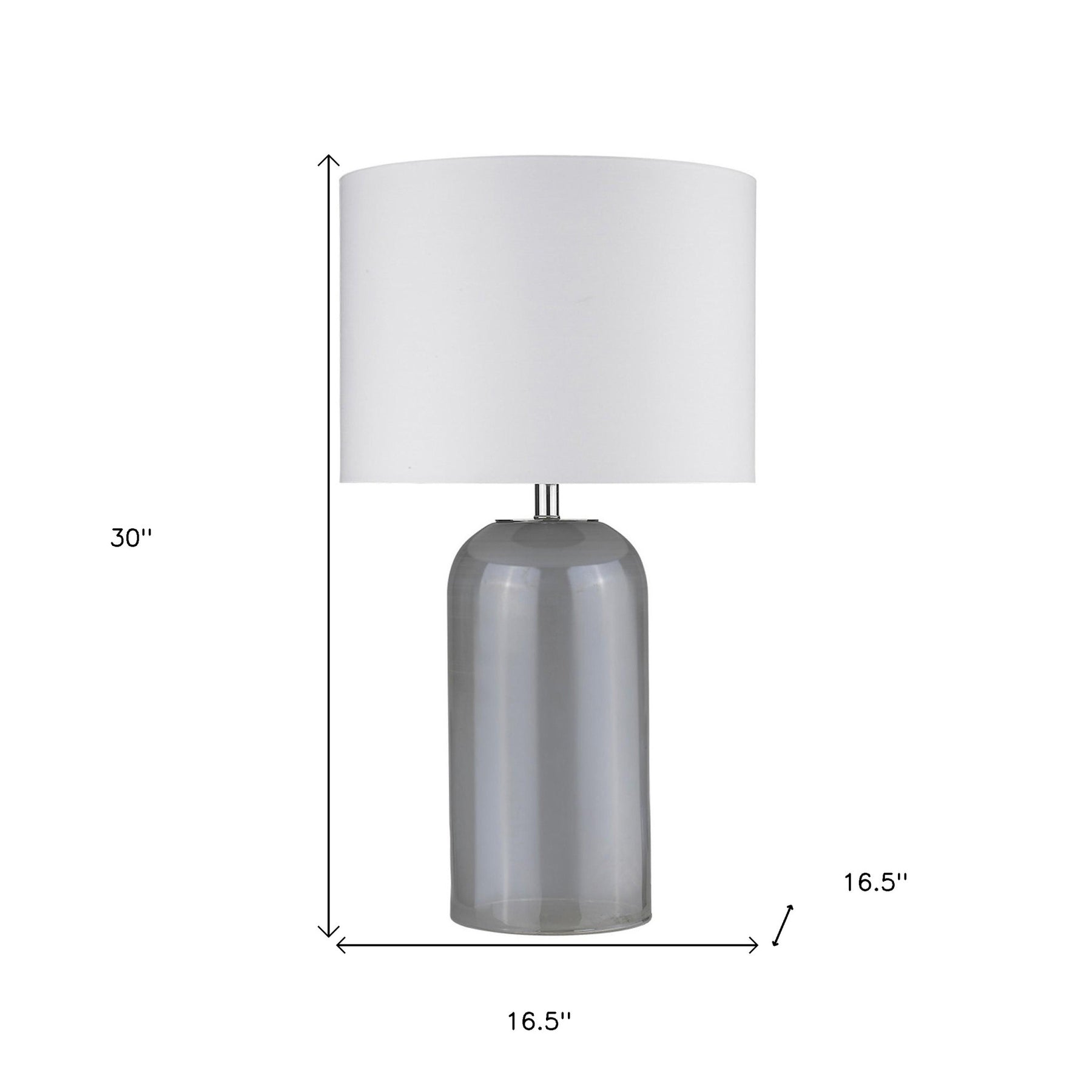 This 30" gray glass column table lamp with white drum shade is a great way to add some brightness to any corner of your home. A gorgeous gray glassbase brings just the right amount of pizzazz to this fabulous lamp. The white drum fabric shade is finishes this piece off nicely and symmetrically High quality design makes this a great lamp for not only lighting, but accenting a room with style. The perfect lamp to create just the right natural and soothing light in your space. 30" H x 16.5" W x 16.5" D