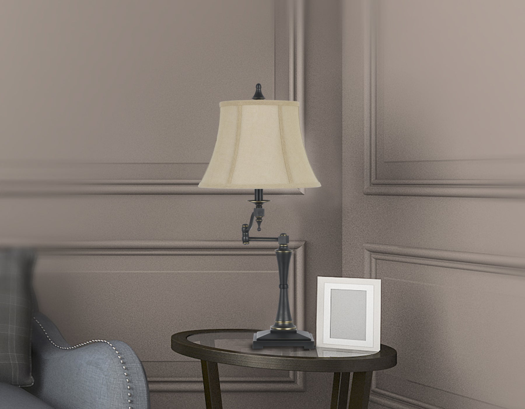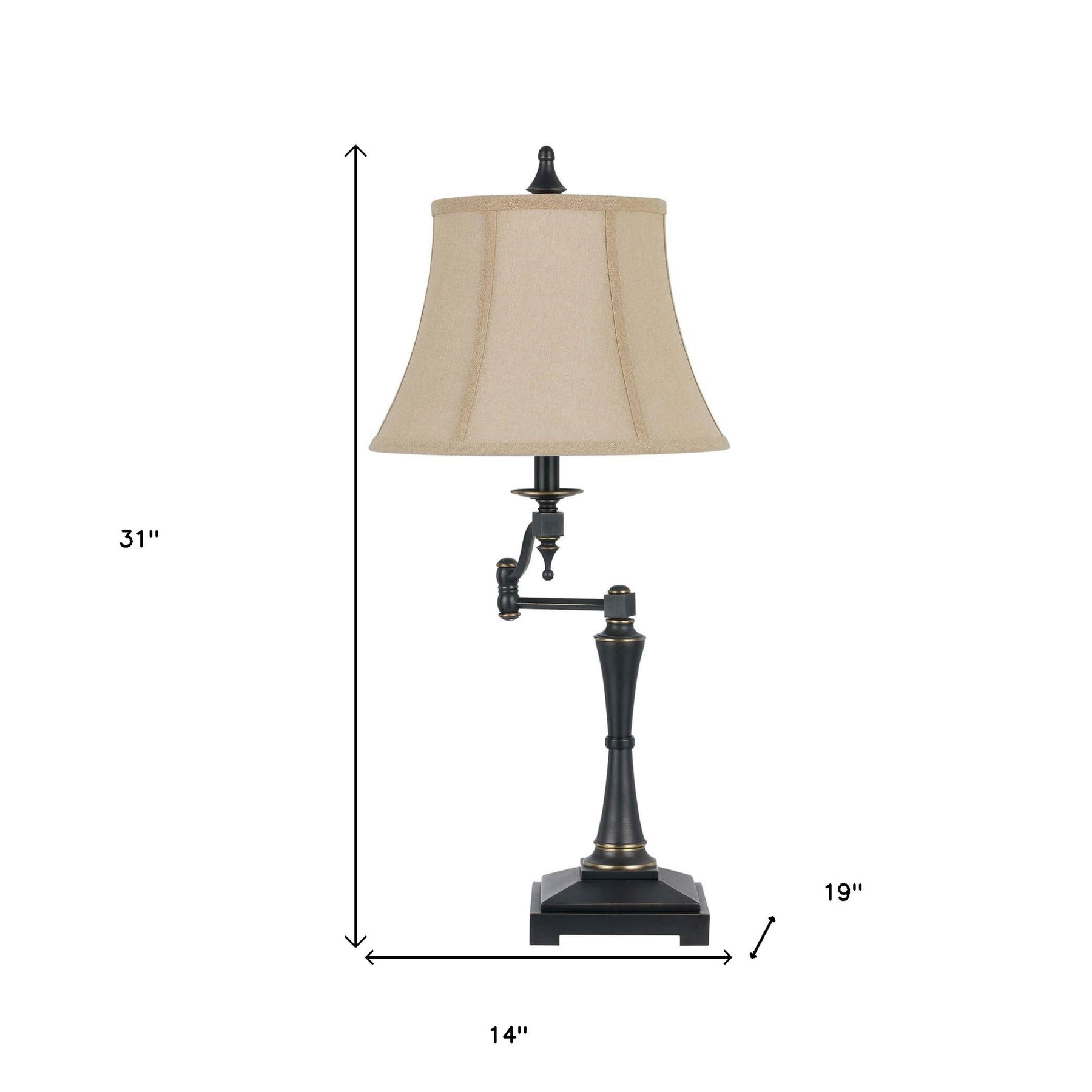 Add a bright anchor to your room with this 31" bronze metal table lamp with beige empire shade. The lamp is made of sturdy metaland features a bronze color. Includes a beige fabric, empire shaped shade, making this a fashionable piece that will complement most any interior. This standard table lamp is designed to provide general lighting to the area. Use this lamp anywhere and elevate the look of the whole space. Bring some lite and good vibes into your space with this updated and stylishly designed lamp. 31" H x 14" W x 19" D