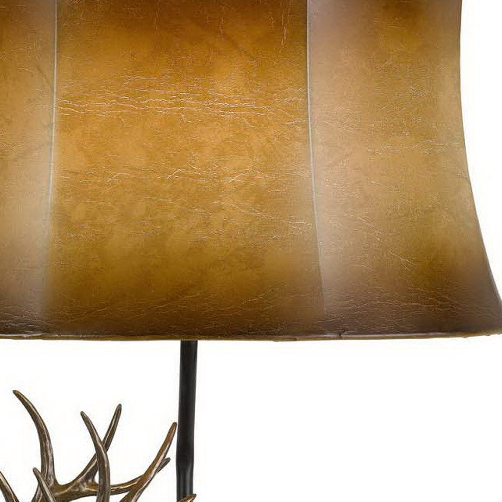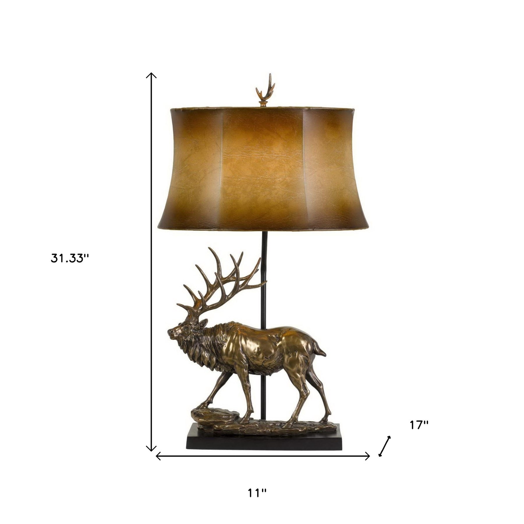 This 31" bronze table lamp with brown bell shade is a great way to add some brightness to any corner of your home. The lamp is made of sturdy resinand features a bronze color. This standard table lamp is designed to provide general lighting to the area. Use this lamp anywhere and elevate the look of the whole space. It is perfect for virtually any decor. 31.33" H x 11" W x 17" D
