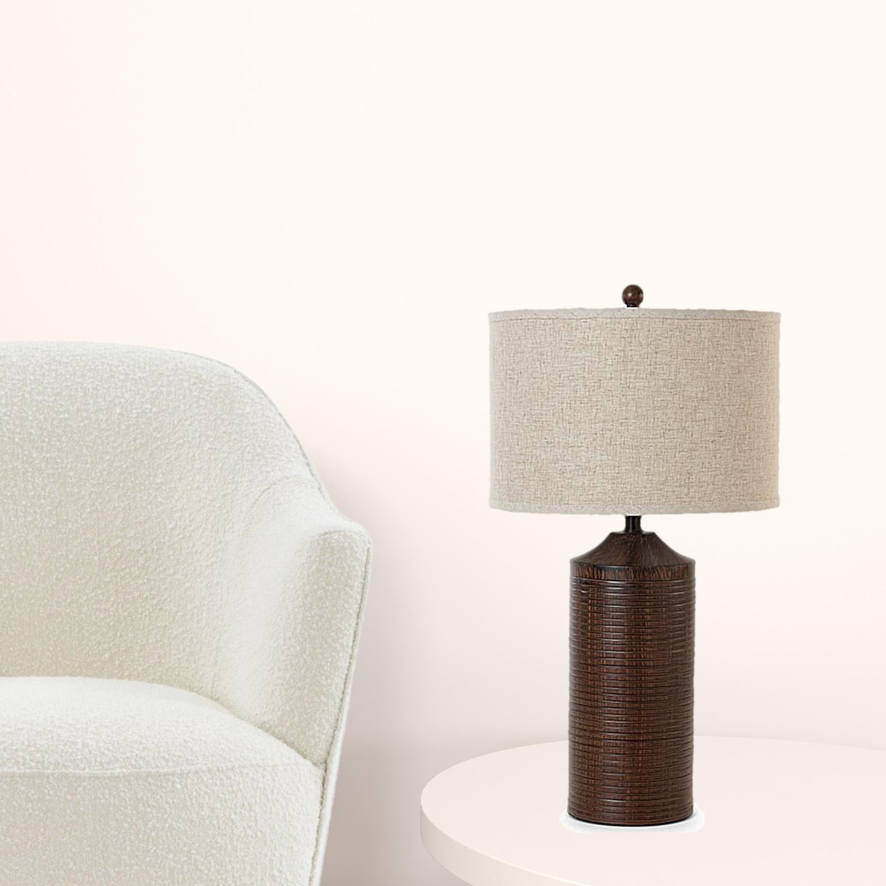 Truly a mix of design and functionality that doesn't compromise on style, this 31" brown usb table lamps with beige drum shade will be a great addition to your space. The base of this lamp is made of resin finished in a brown tone. This standard table lamp is designed to provide general lighting to the area. Use this lamp anywhere and elevate the look of the whole space. The perfect lamp to create just the right natural and soothing light in your space. 31" H x 7" W x 7" D