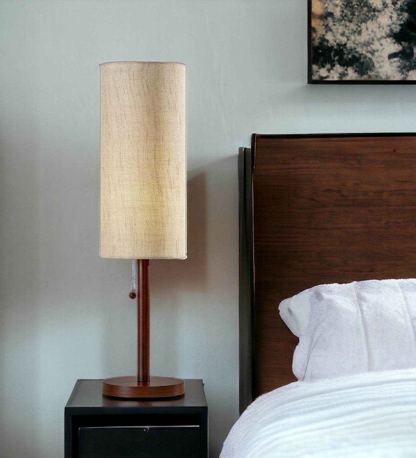 Truly a mix of design and functionality that doesn't compromise on style, this 31" walnut solid wood standard table lamp with beige shade will be a great addition to your space. A gorgeous walnut solid woodbase brings just the right amount of pizzazz to this fabulous lamp. This standard table lamp is designed to provide general lighting to the area. Use this lamp anywhere and elevate the look of the whole space. Bring some lite and good vibes into your space with this updated and stylishly designed lamp. 31" H x 8" W x 8" D