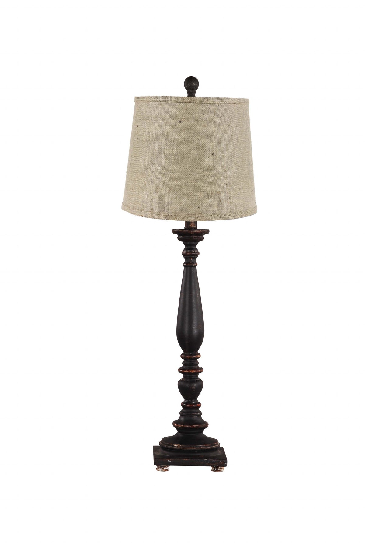 Embrace the good life with this hard working and stylish 32-inch black table lamps with natural empire shade. The lamp is made of sturdy resin and features a black color. The natural shade has a empire shape and is made of fabric, which makes it a perfect choice. This standard table lamp is designed to provide general lighting to the area. The light that this lamp throws is soft and warm to elevate the look of most any space in your home. Bring some lite and good vibes into your space with this updated and stylishly designed lamp. 32-inch H x 16-inch W x 16-inch D
