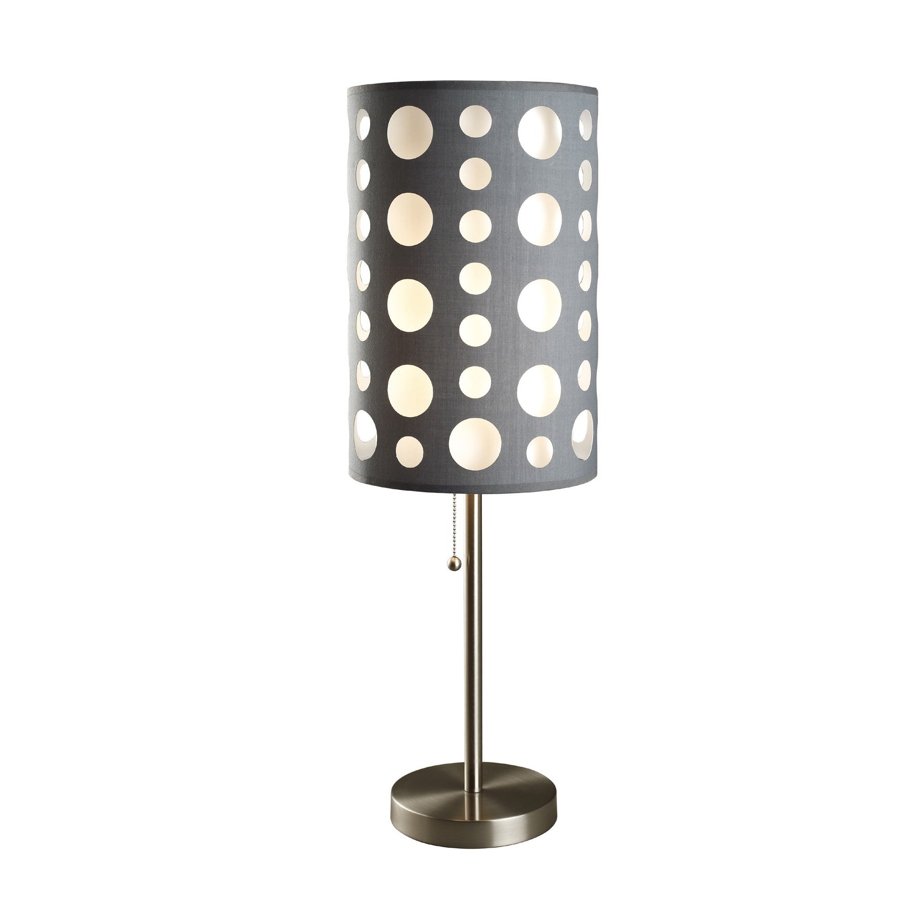 Embrace the good life with this hard working and stylish 33" steel novelty table lamp with gray and white drum shade. The base of this lamp is made of steel metal. The coloration of the steel lamp base creates a fashionable marriage with the the gray and white fabric drum shaped shade. Designed to be unique and visually pleasing while giving great light, this novelty lamp will bring some fun fashion and style to your space Use this lamp anywhere and elevate the look of the whole space. Bring some lite and good vibes into your space with this updated and stylishly designed lamp. 33" H x 16" W x 16" D