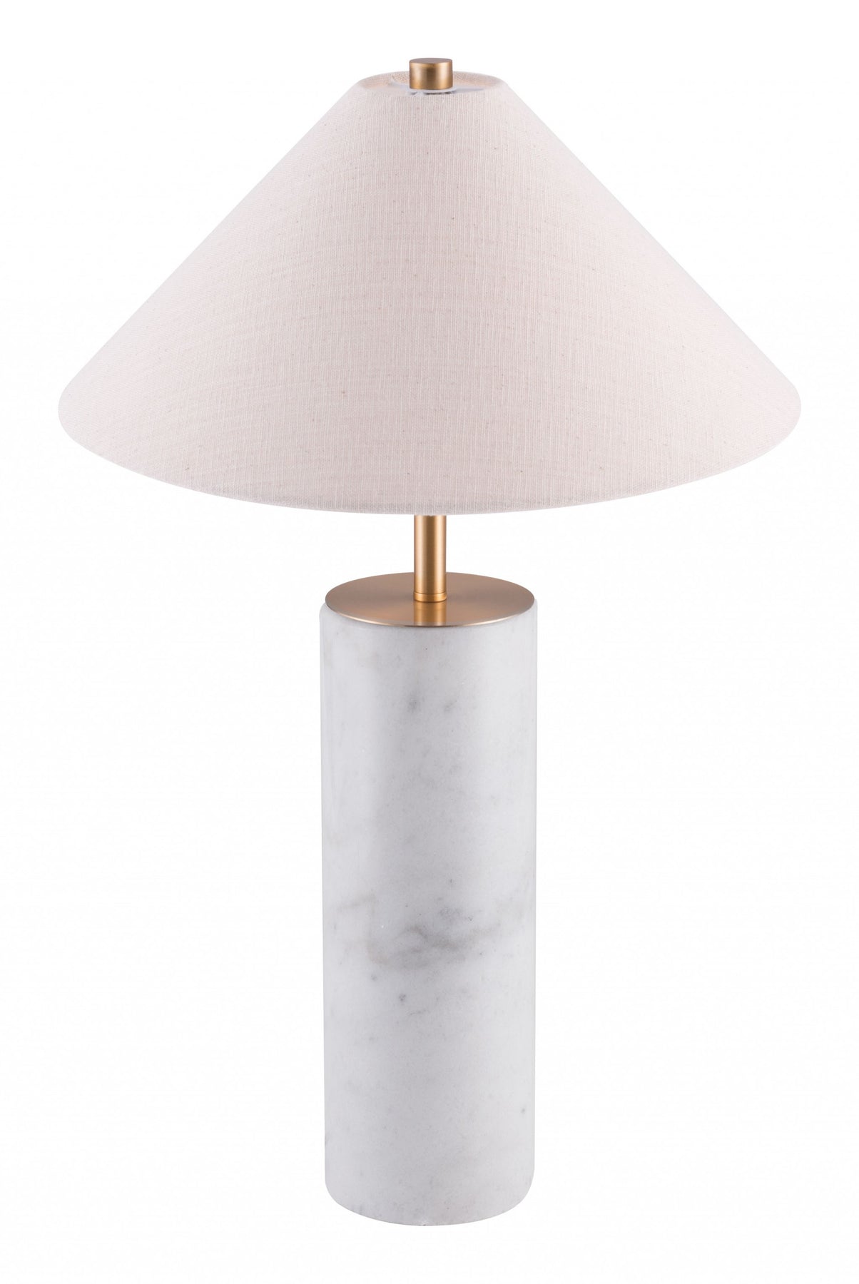 • Metal base with cone-shaped white shade.