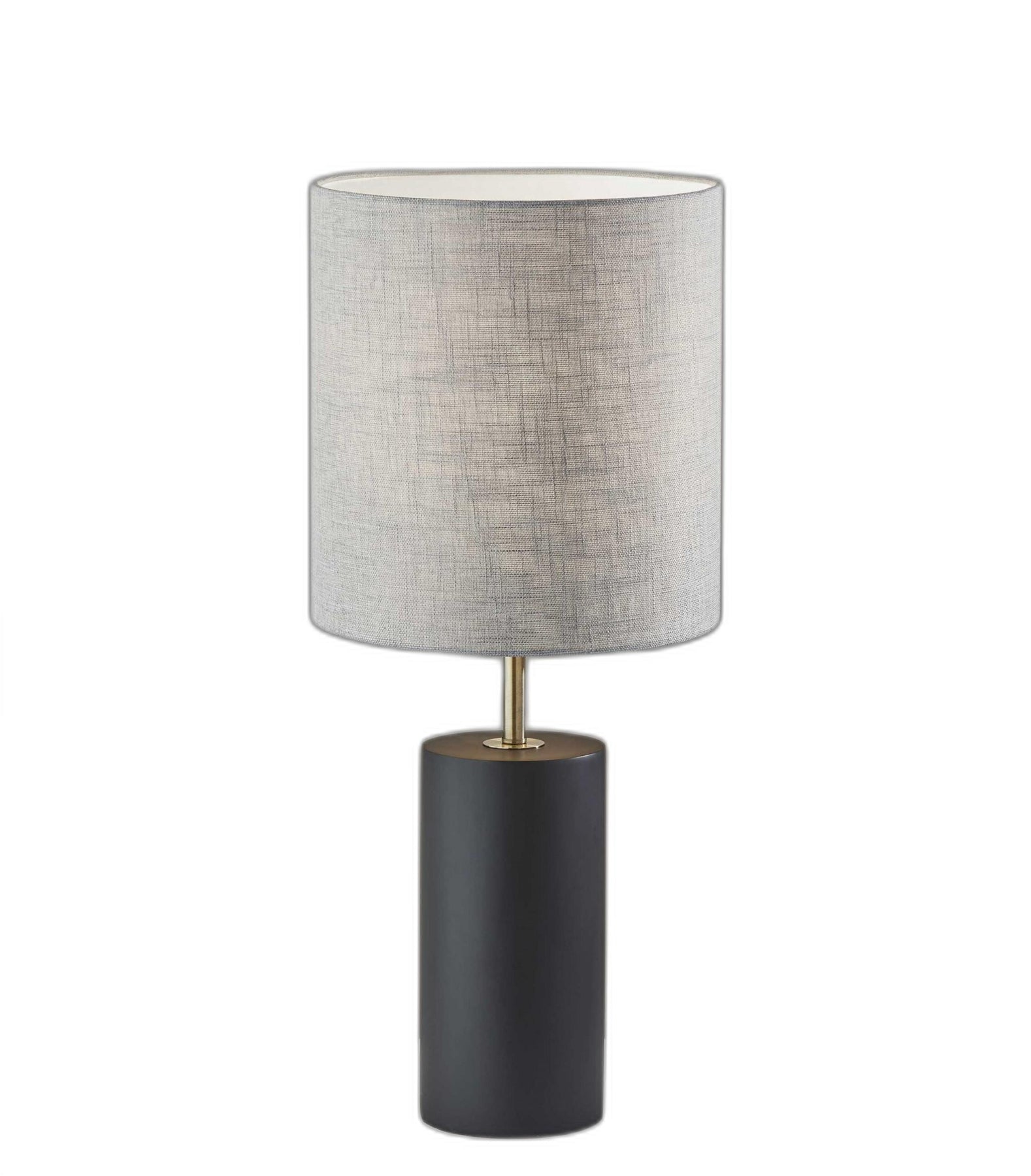 This table lamp is a beautiful lighting choice that is versatile enough to fit into any room of the home. Crafted of black poplar wood with a touch of antique brass metal, this lamp will add a classy touch of tailored styling to your home. A light grey textured fabric softens the look. At 30.5" high, this table lamp is a substantial addition with a compact, 13" footprint that still fits into tight spaces. Turn the lamp on and off with a convenient switch on the socket. All lighting product is either UL or ETL listed, meaning that it has been tested and approved to meet the government-regulated safety standards for the USA. Bulb is not included.