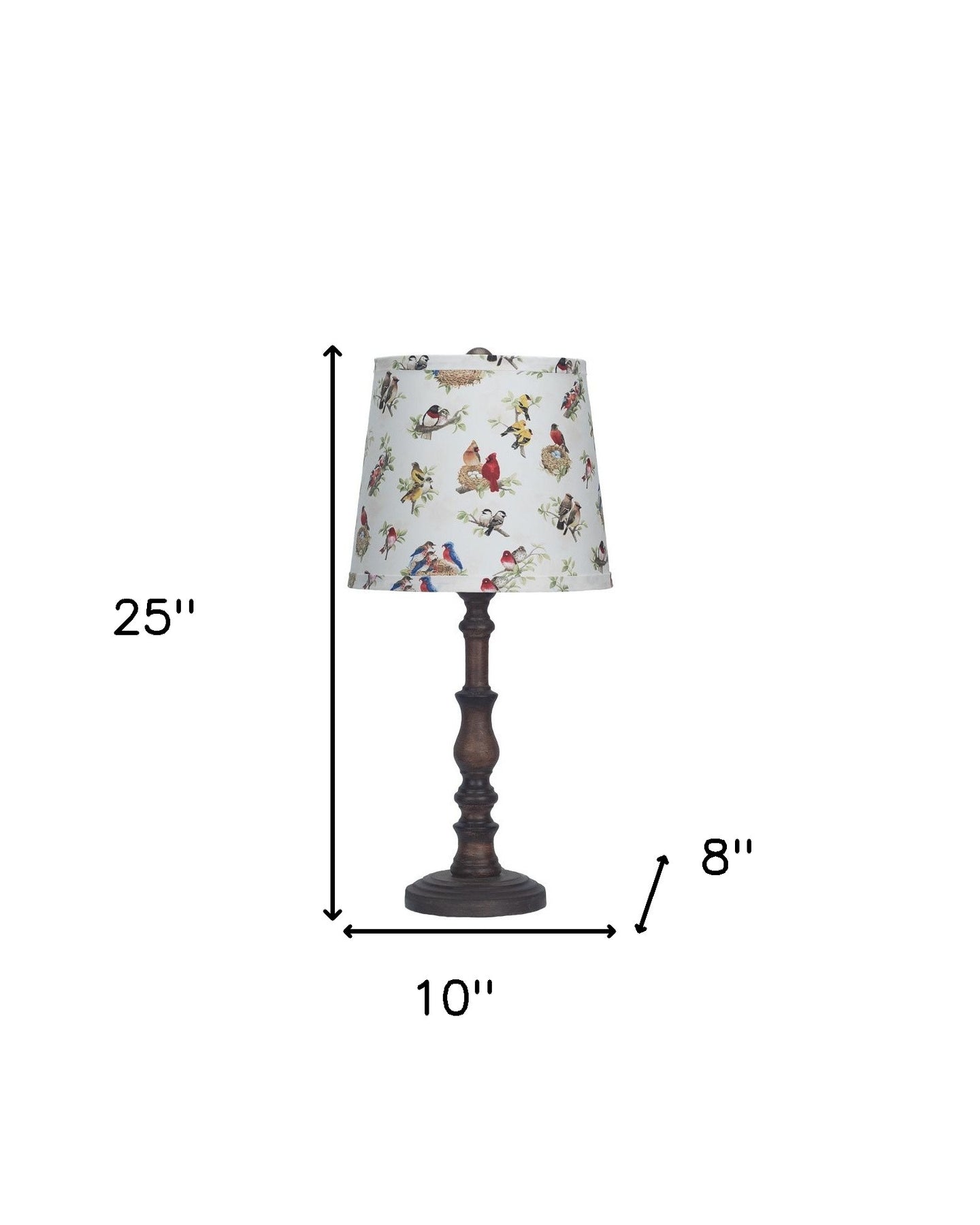 Distressed Brown Traditional Table Lamp With Birds Printed Shade