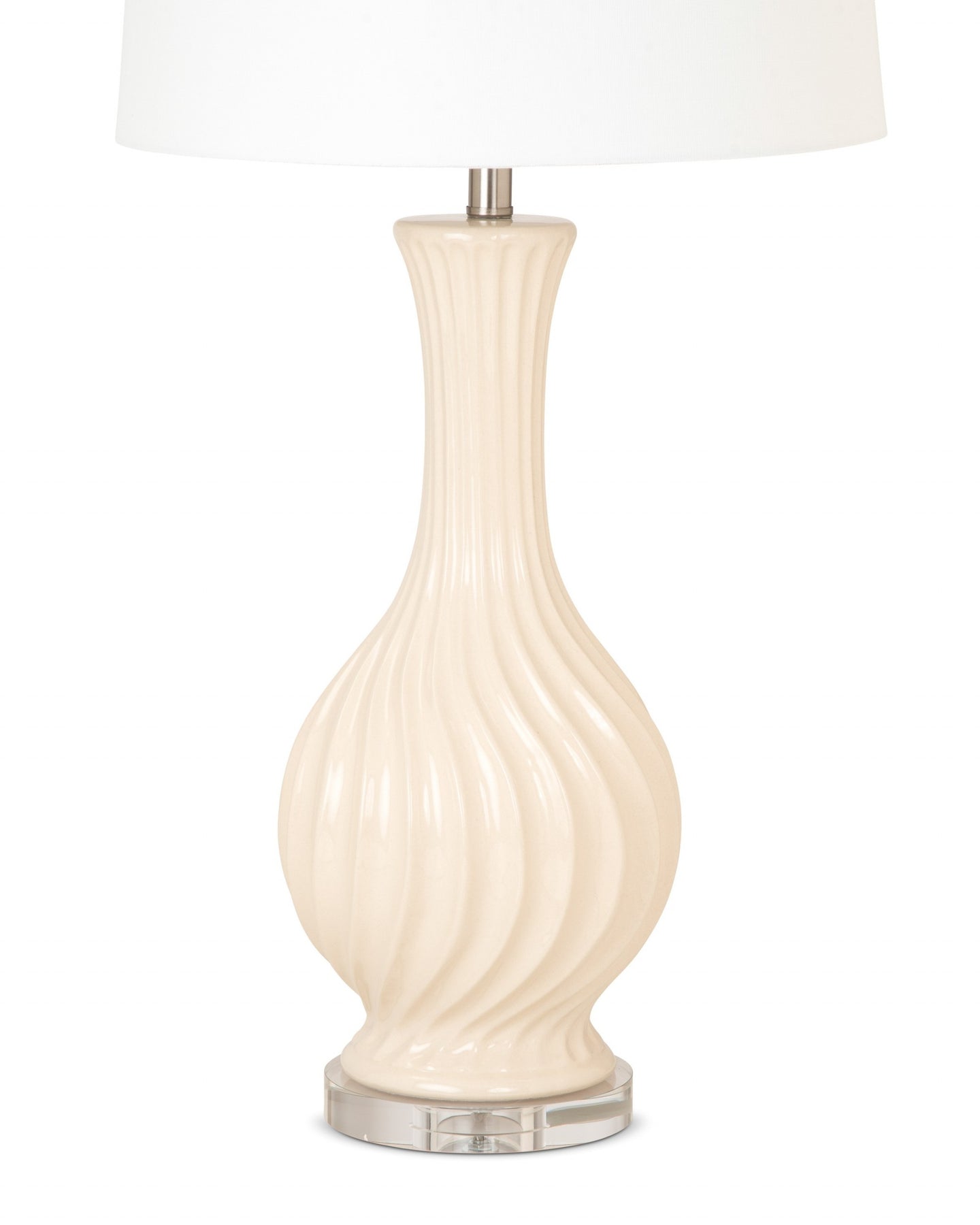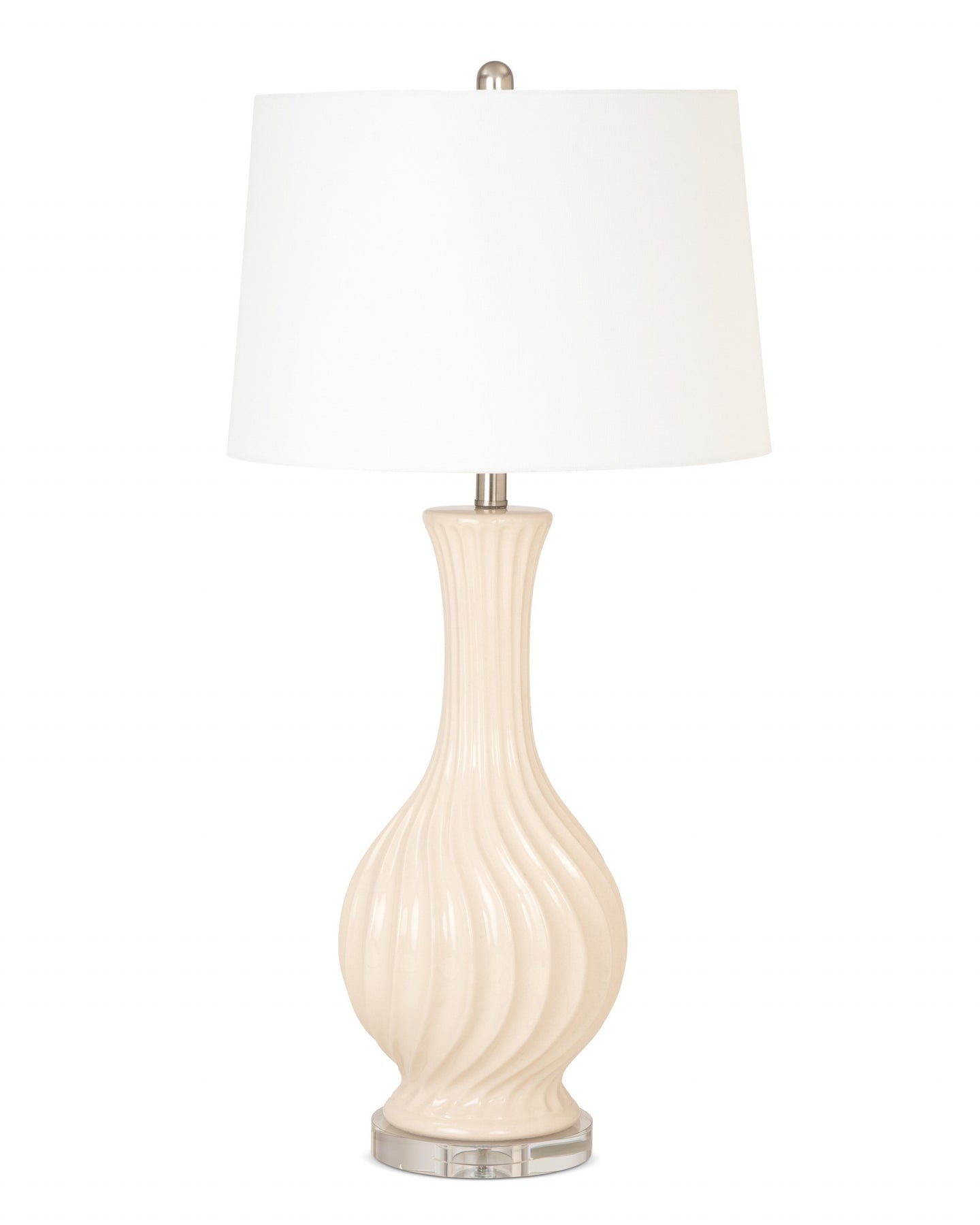 Cast a modern decorative spell to your living space with this Set of 2 Light Gray Curved Ceramic Table Lamps. The curvy beige base is accented by subtle swirls for added texture and the smooth surface of the lampshade evokes a sense of modern elegance. When turned on, these table lamps will enliven your space with a mesmerizing source of light, but when turned off, they will accentuate the beauty of the room. Gorgeously crafted with ceramic and crystal to enhance the aesthetics of your contemporary décor while being an efficient lighting solution to revive any mundane part of your home. 33” H each. Set of 2.