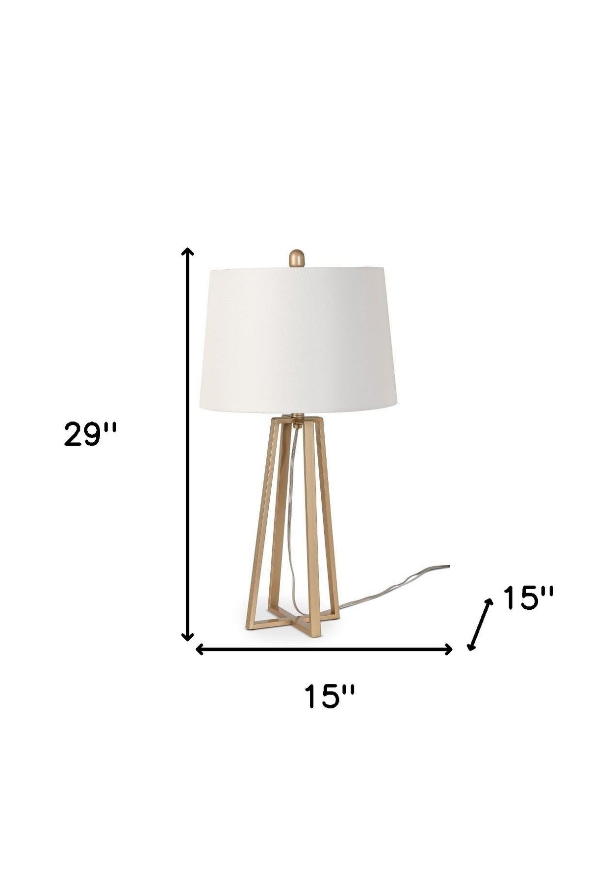With this set of two 29-inch gold metal geometric table lamps with white drum shade you can bring in design to any space along with adding some ambient lighting. The base of this lamp is made of metal finished in a gold tone. The white shade has a drum shape and is made of fabric, which makes it a perfect choice. This standard table lamp is designed to provide general lighting to the area. Use this lamp anywhere and elevate the look of the whole space. The perfect lamp to create just the right natural and soothing light in your space. 29-inch H x 15-inch W x 15-inch D