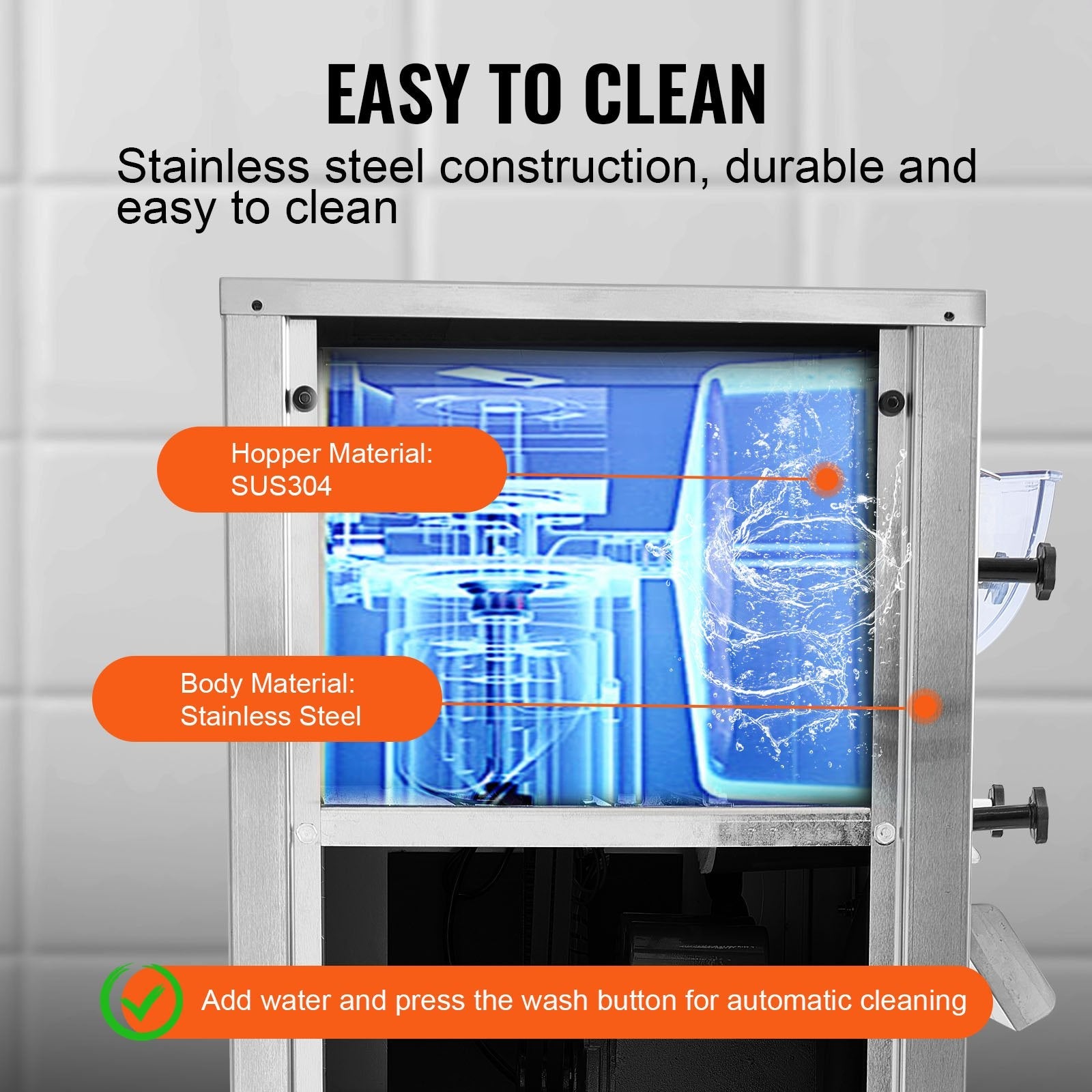 • Stainless Steel Construction: Made from 201-grade body with 304-grade food-safe hopper.