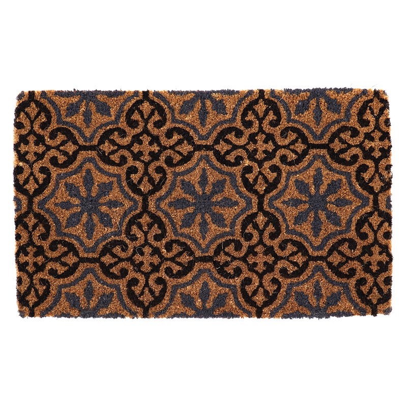 Welcome guests with style using this Portuguese-style Coir Doormat featuring an elegant rosette pattern. Made from durable 100% coir fibers, it effectively wipes shoes and boots while adding character to any entrance. The PVC underlay ensures a non-slip grip, making it suitable for both indoor and outdoor use. Perfect for enhancing the aesthetic and functionality of your doorway.