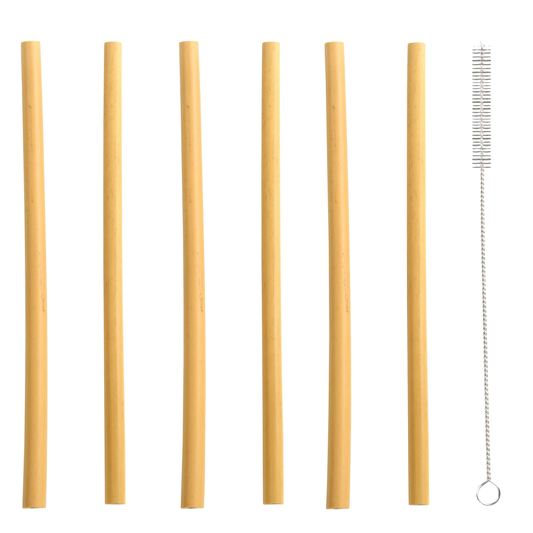 Reduce plastic consumption with this eco-friendly set of 6 reusable bamboo straws. Crafted from natural organic bamboo, these straws are durable, sustainable, and safe for everyday use. Each set includes a handy cleaning brush for simple maintenance—just wash with hot soapy water and reuse. Perfect for both hot and cold drinks, these bamboo straws are an environmentally friendly choice that helps you live greener without sacrificing convenience.