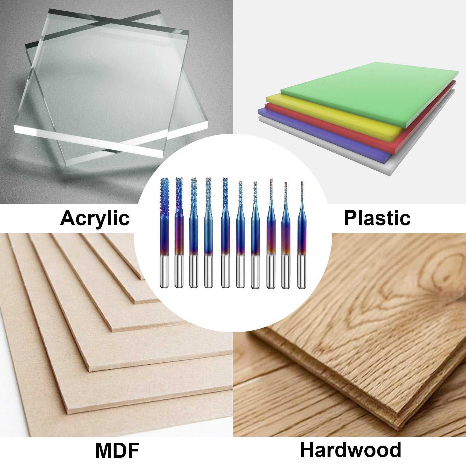 VEVOR 10PCs CNC Router Bits 1/8"(3.175mm) Shank End Mill Nano Blue Coat 0.8/1.0/1.2/1.4/1.6/1.8/2.0/2.2/2.4/3mm Engraving Bits Tungsten Steel Spiral Milling Tool Set for Engraving Cutting Acrylic Woo