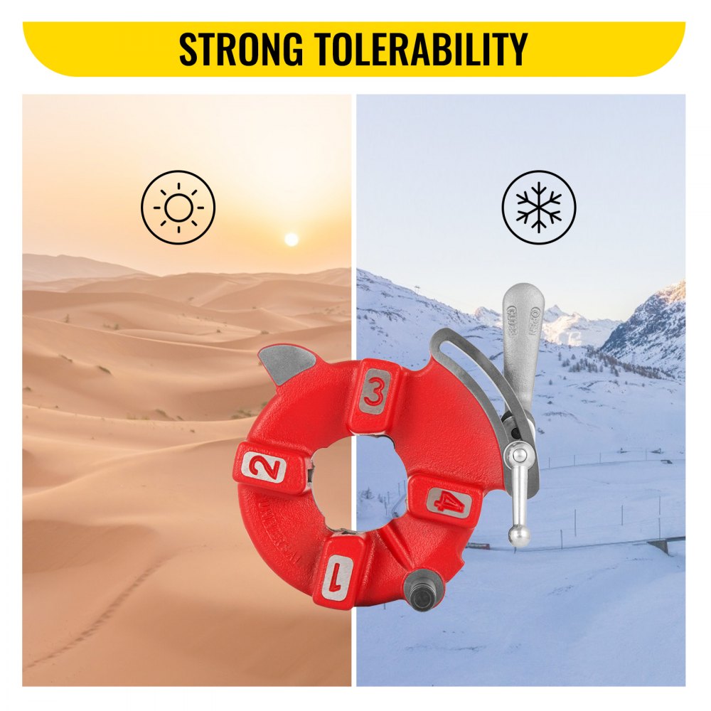 Upgrade your pipe threading system with the VEVOR 811A Universal Self-Open Dies Head, expertly engineered for compatibility with Ridgid pipe threaders. Designed to handle pipe sizes ranging from 1/8" to 2", this dies head features a self-opening mechanism that significantly improves efficiency by enabling quick die changes without the need for manual adjustments. Built for threading NPT pipes, it fits popular Ridgid models including 300, 535, 300C, and 500 Carriage Cutter. Durable and reliable, the VEVOR 811A is an essential addition for plumbers, contractors, and pipefitting professionals.