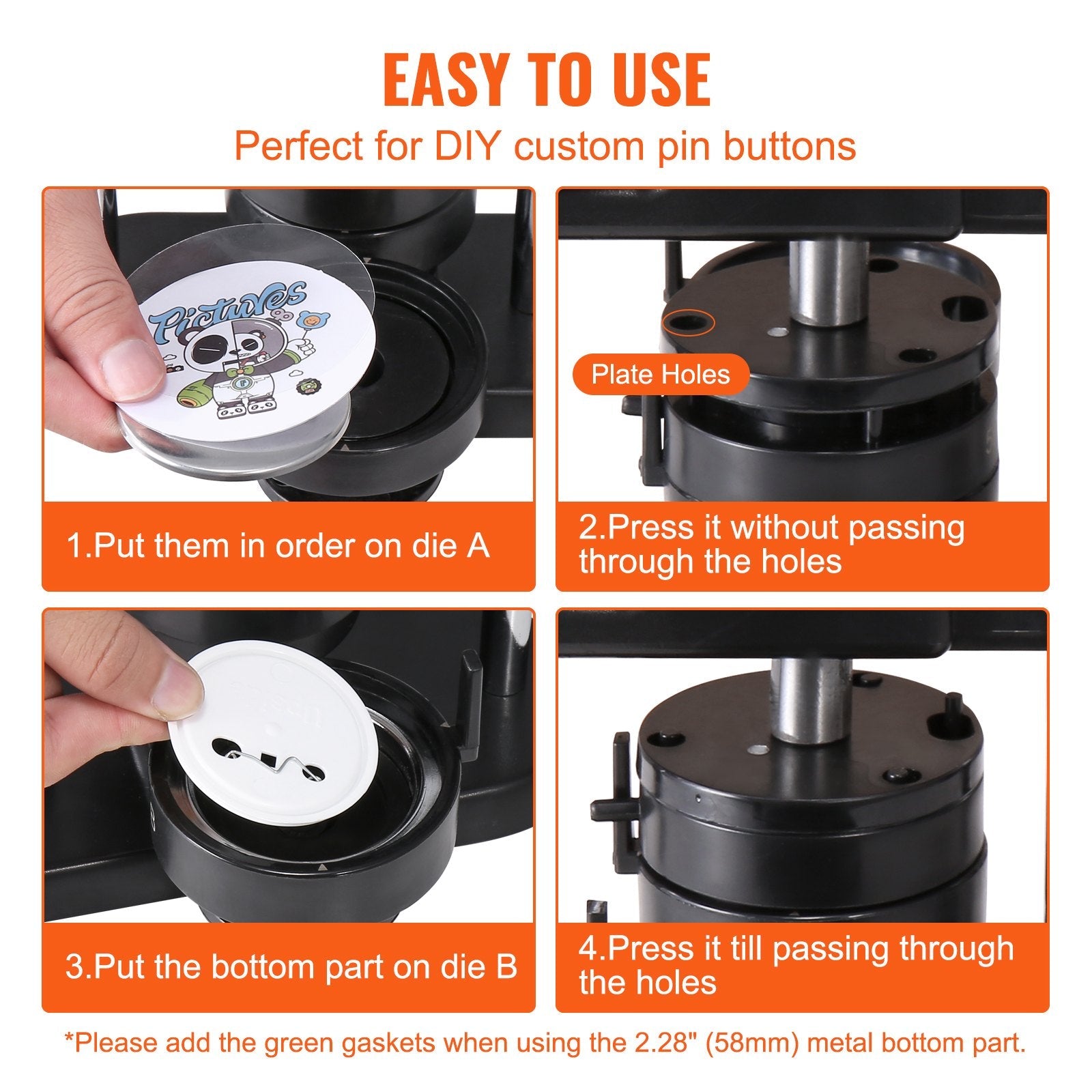VEVOR Button Maker Machine, 1/1.25/2.28 inch(25/32/58mm) 3-in-1 Pin Maker, Installation-Free Badge Punch Press Kit, Button Making Supplies with 300pcs Button Parts, Circle Cutter, Magic Book