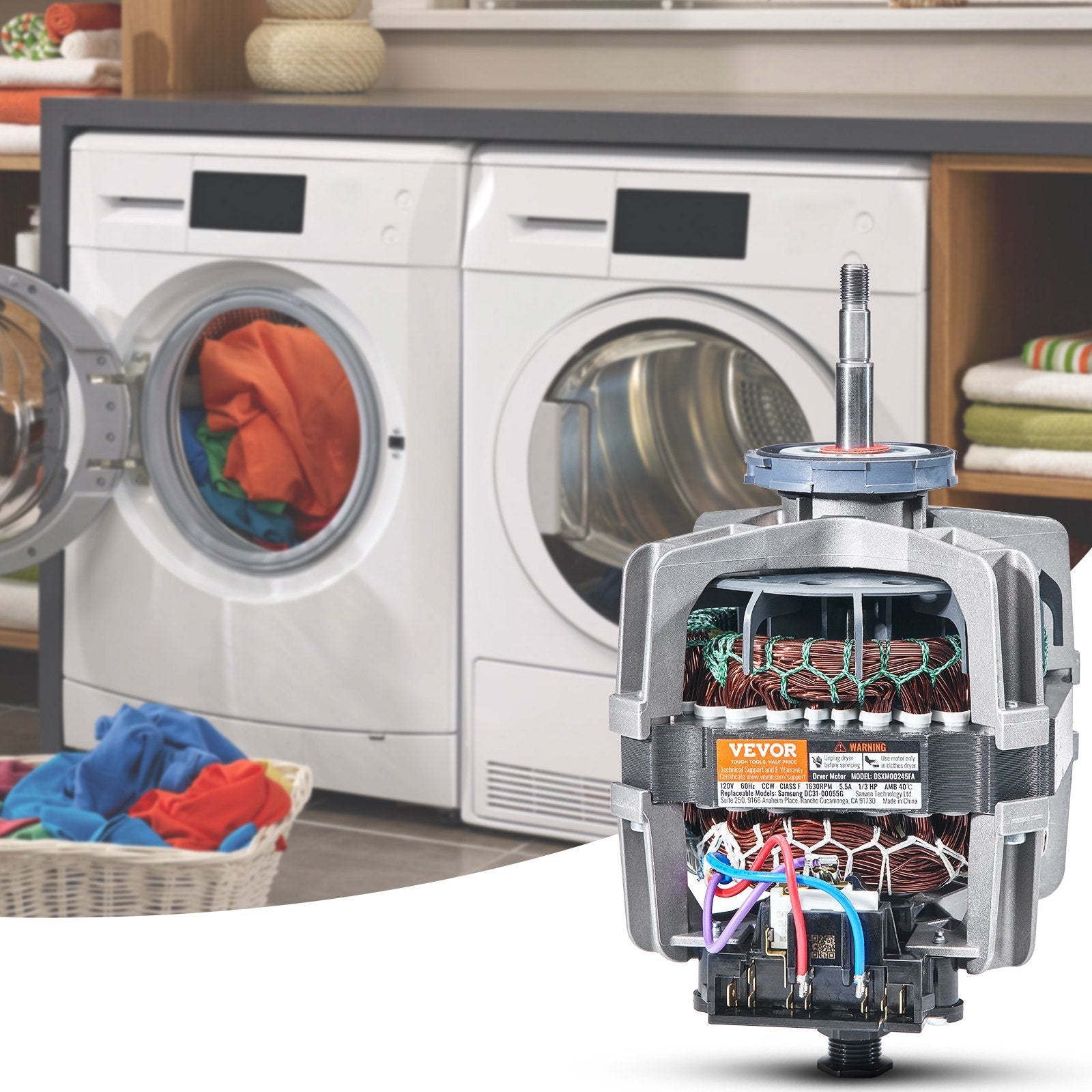 The VEVOR DC31-00055G Dryer Drive Motor is designed to provide efficient and quiet operation for your dryer. With a 1/3HP motor and 1630RPM speed, this durable and high-performance motor ensures smooth functioning and quick drying. Compatible with popular models from Samsung and Kenmore, it is a reliable replacement for part numbers 40299032011, 40299032012, 59289622, DV330AGB, DV331AEW, DV350AER, and DV350AGR. This motor delivers high efficiency with minimal noise, making it an ideal choice for your appliance repairs.